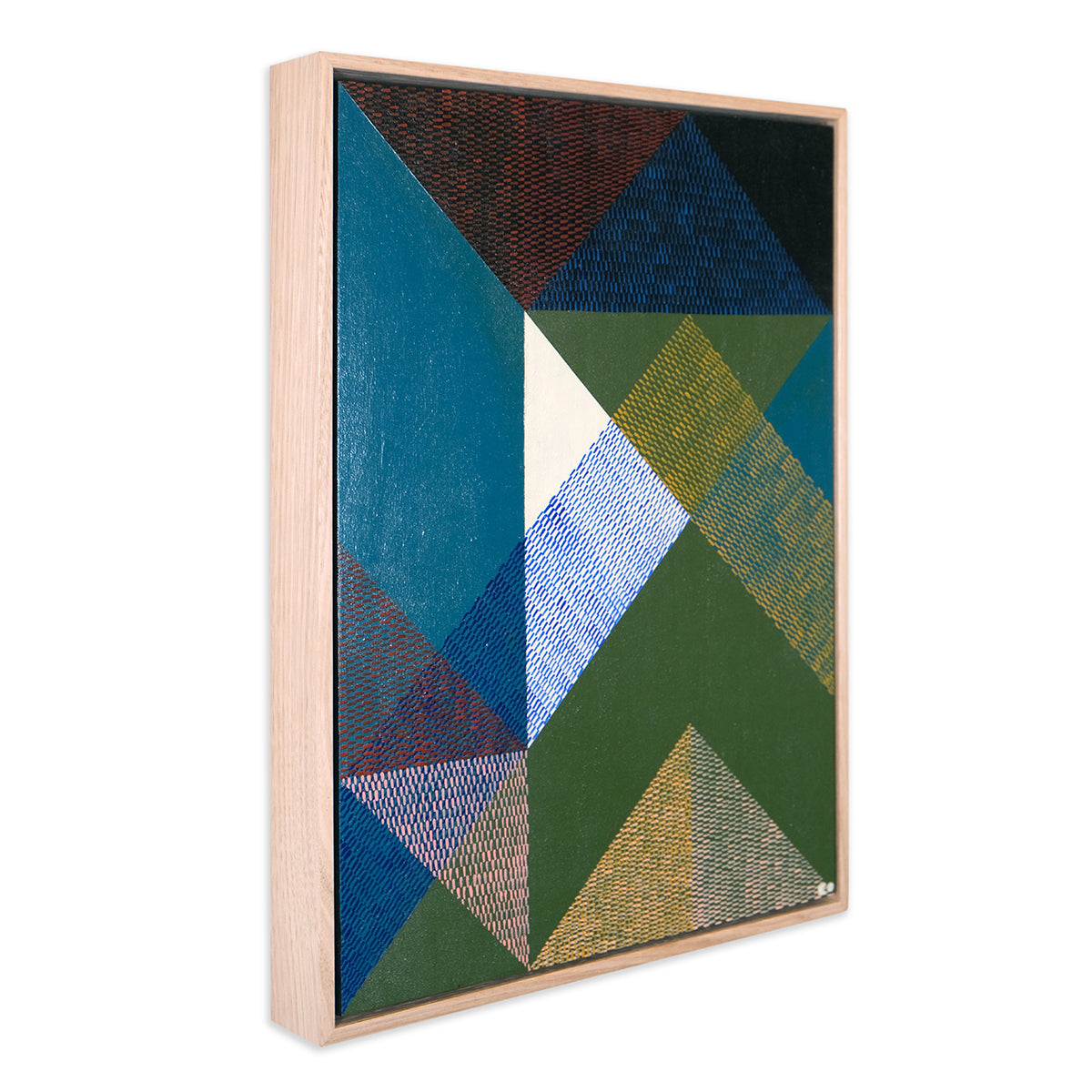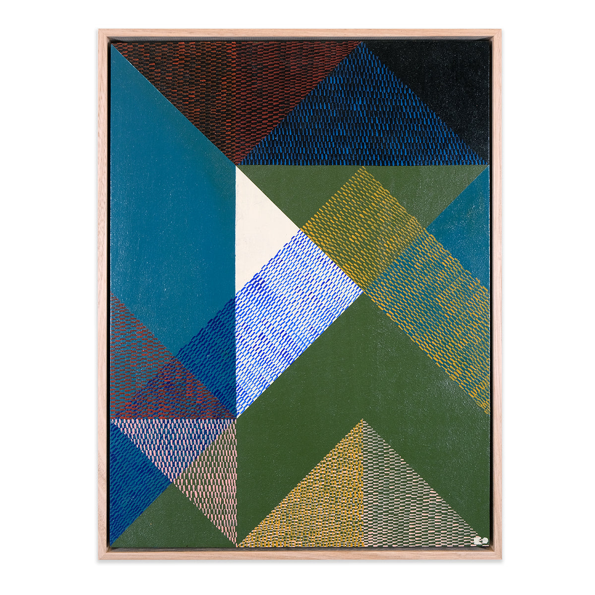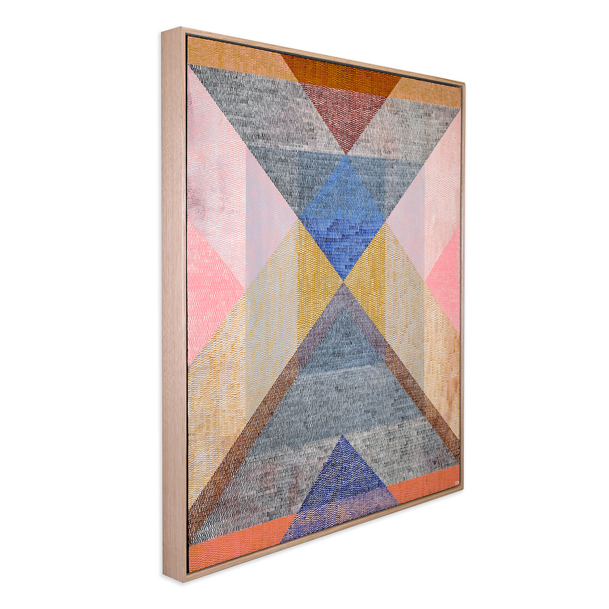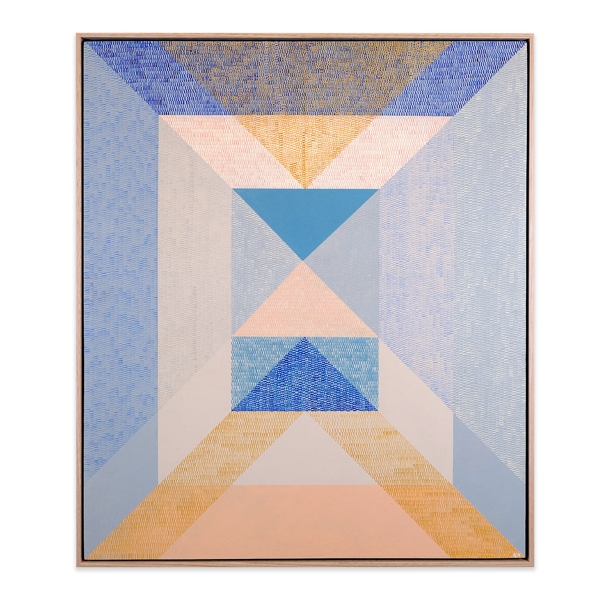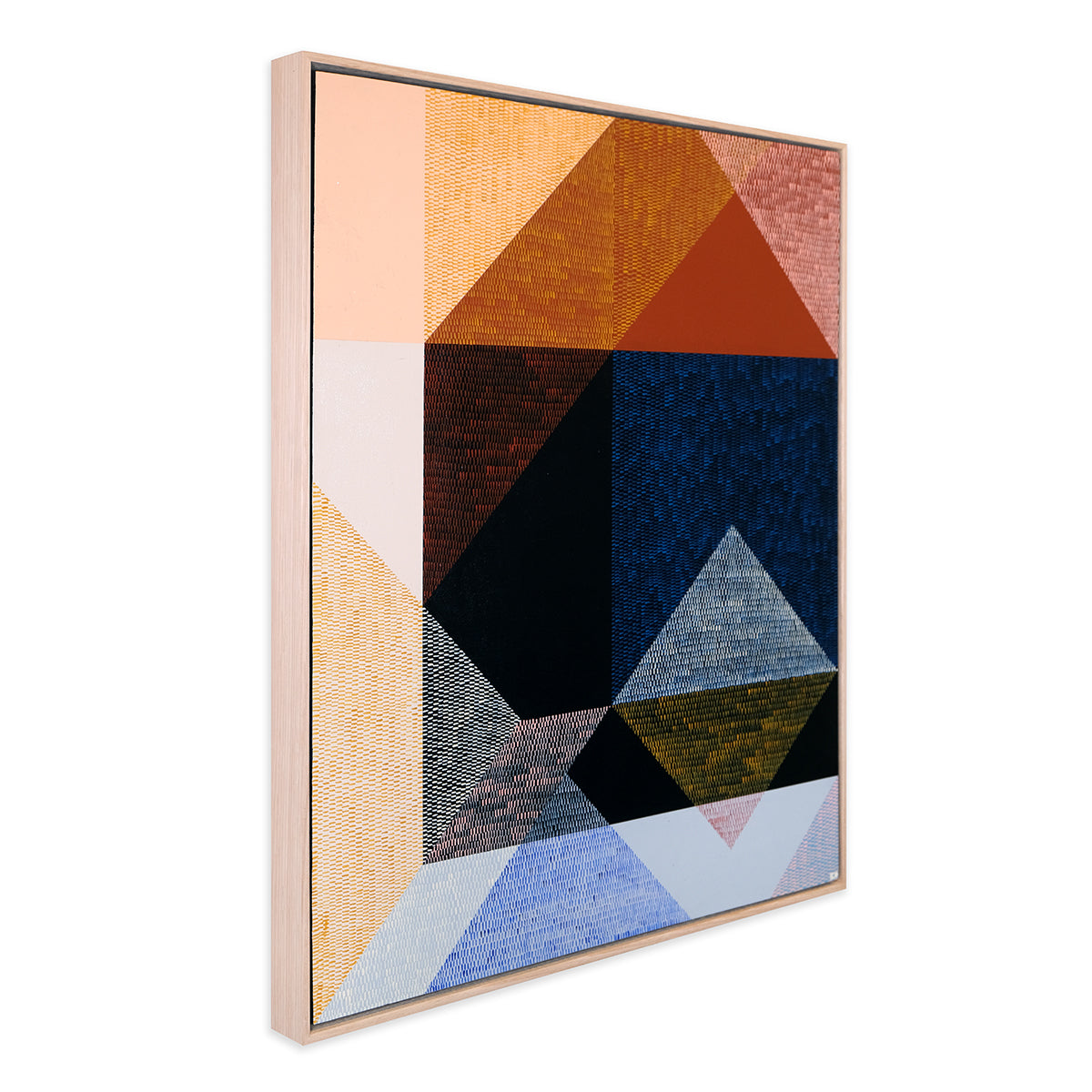 Heavily inspired by shape, whether natural or indesign, Kels' work is intentionally abstract with repetitive patterning of imperfect and unique brushstrokes that work together to create a uniform whole. For Interweave Kels is exploring shadow, reflection and repetition, particularly layering brushstroke textures to explore and interpret colour. Aesthetically it is about the power of form, line, colour, composition, to create rhythm, balance, harmony and strength. Its subject matter is ambiguous, with minimal titles that hint at context and encourage individual interpretation and meaning.