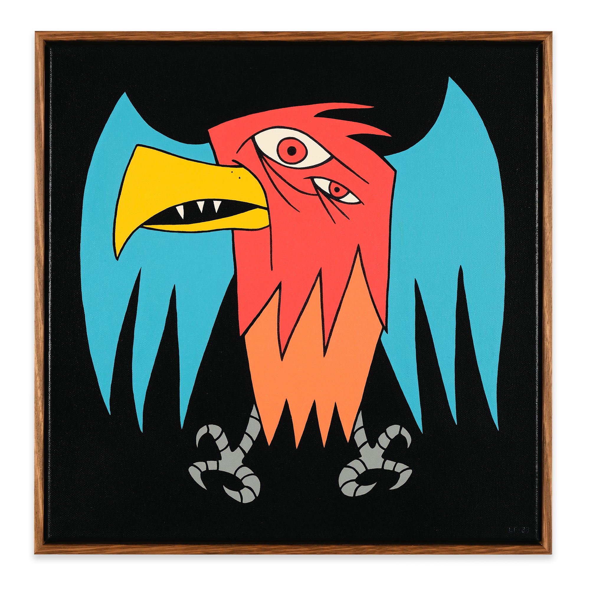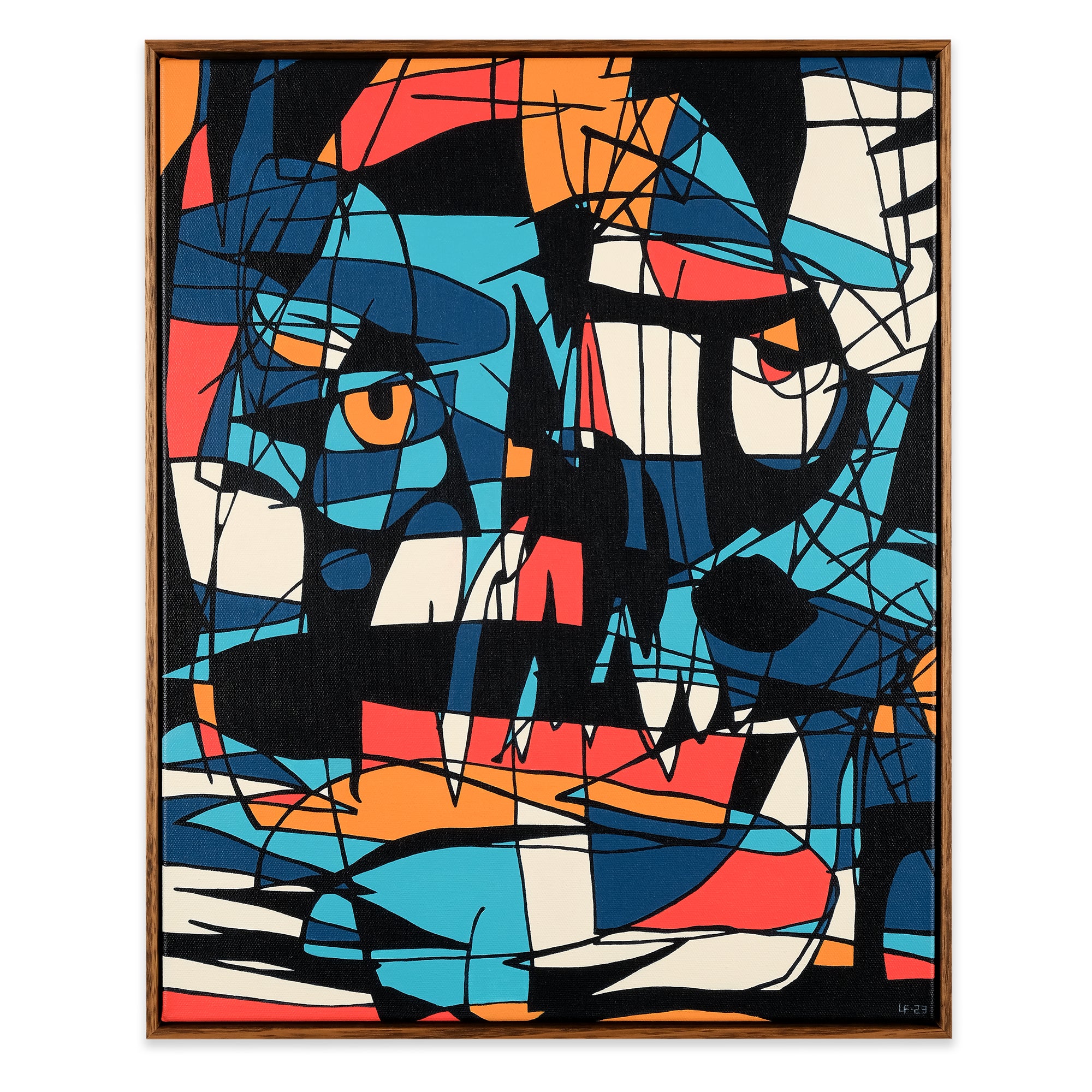He studied textile design in the UK and is an experienced apparel designer. Years of working in graphic design have pushed his paintings to become bolder and much simpler than previous work.