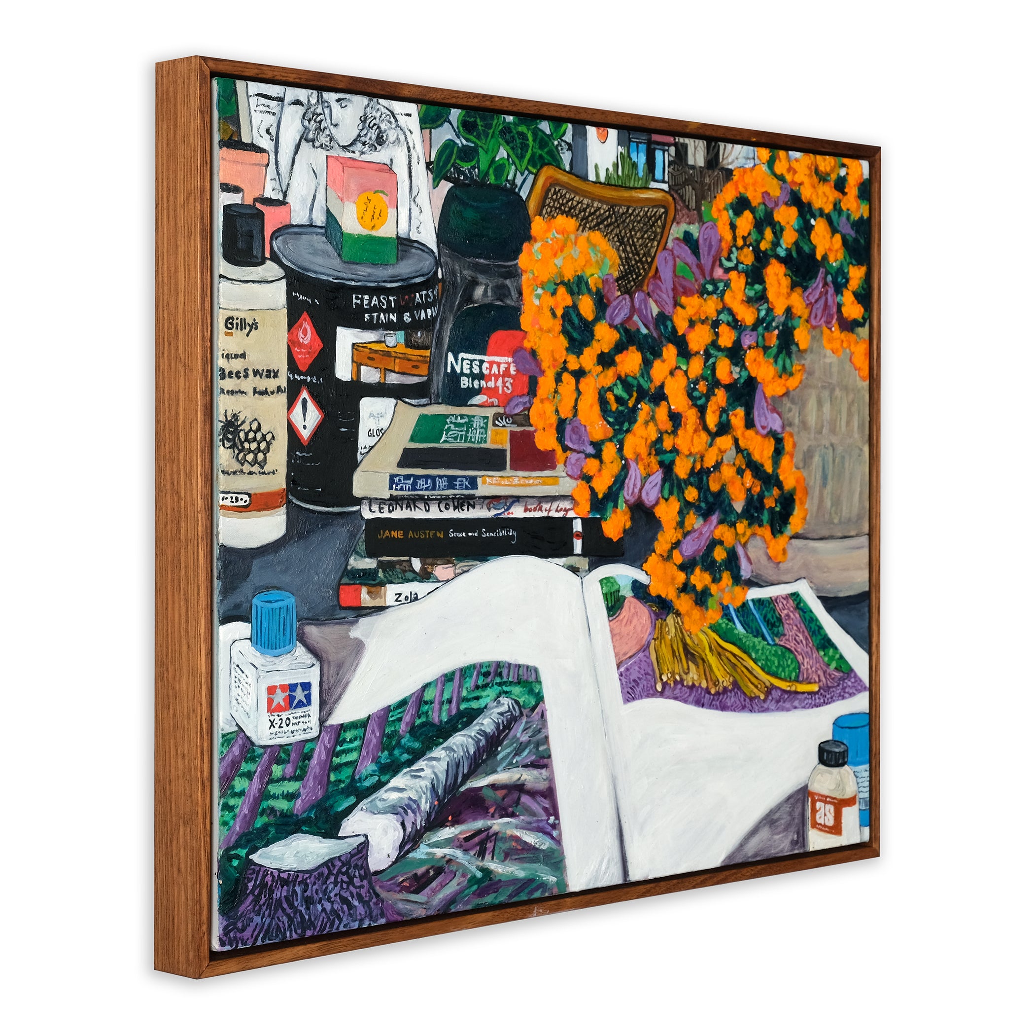 Title: Orange Bloom with Hockney in the Studio