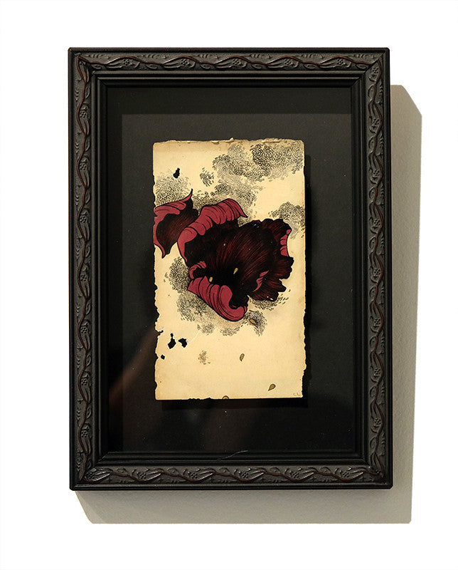 Medium: Pen and oil on found 1881 WW1 journal paper.