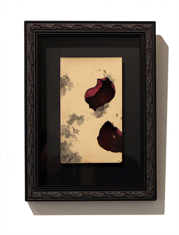 Medium: Pen and oil on found 1881 WW1 journal paper.