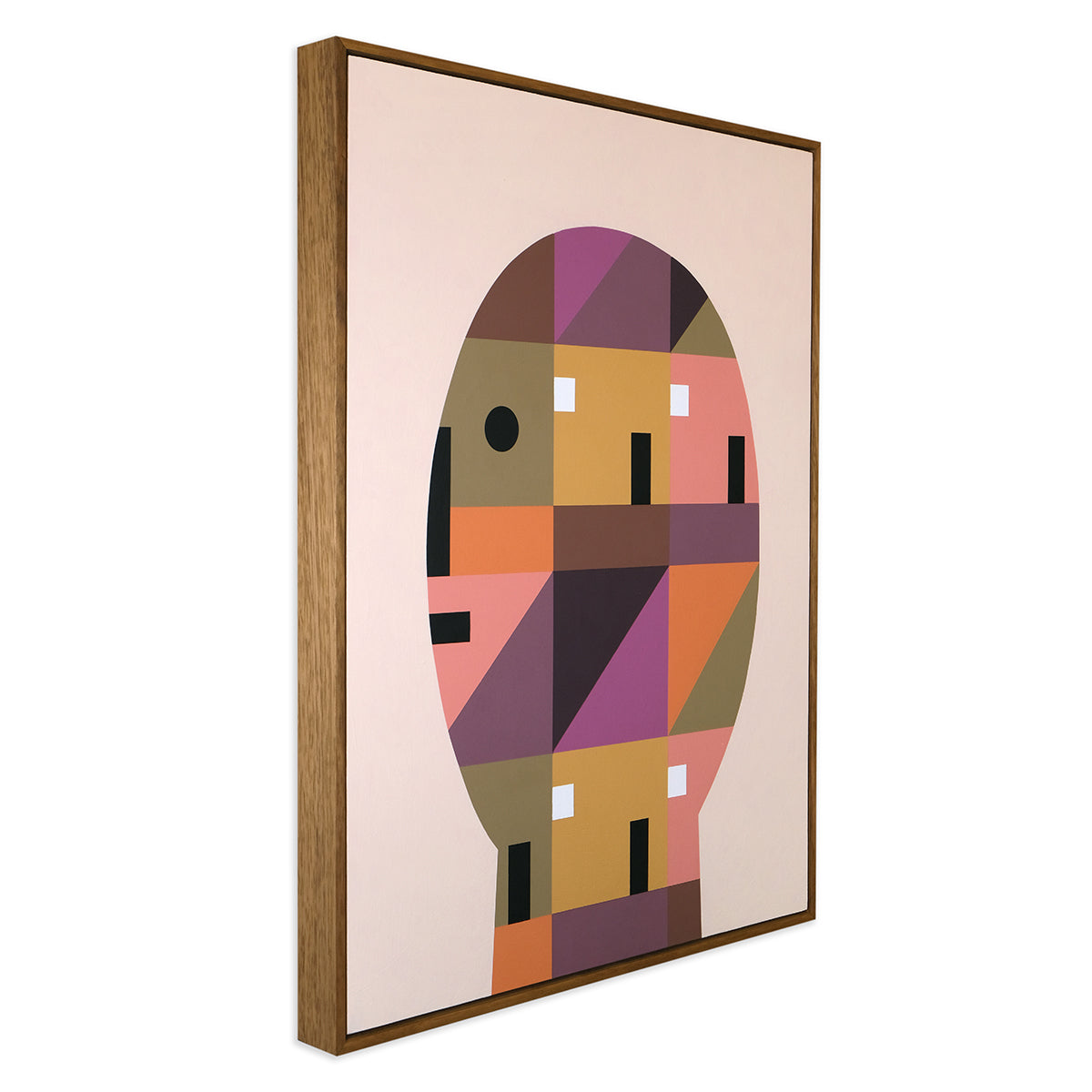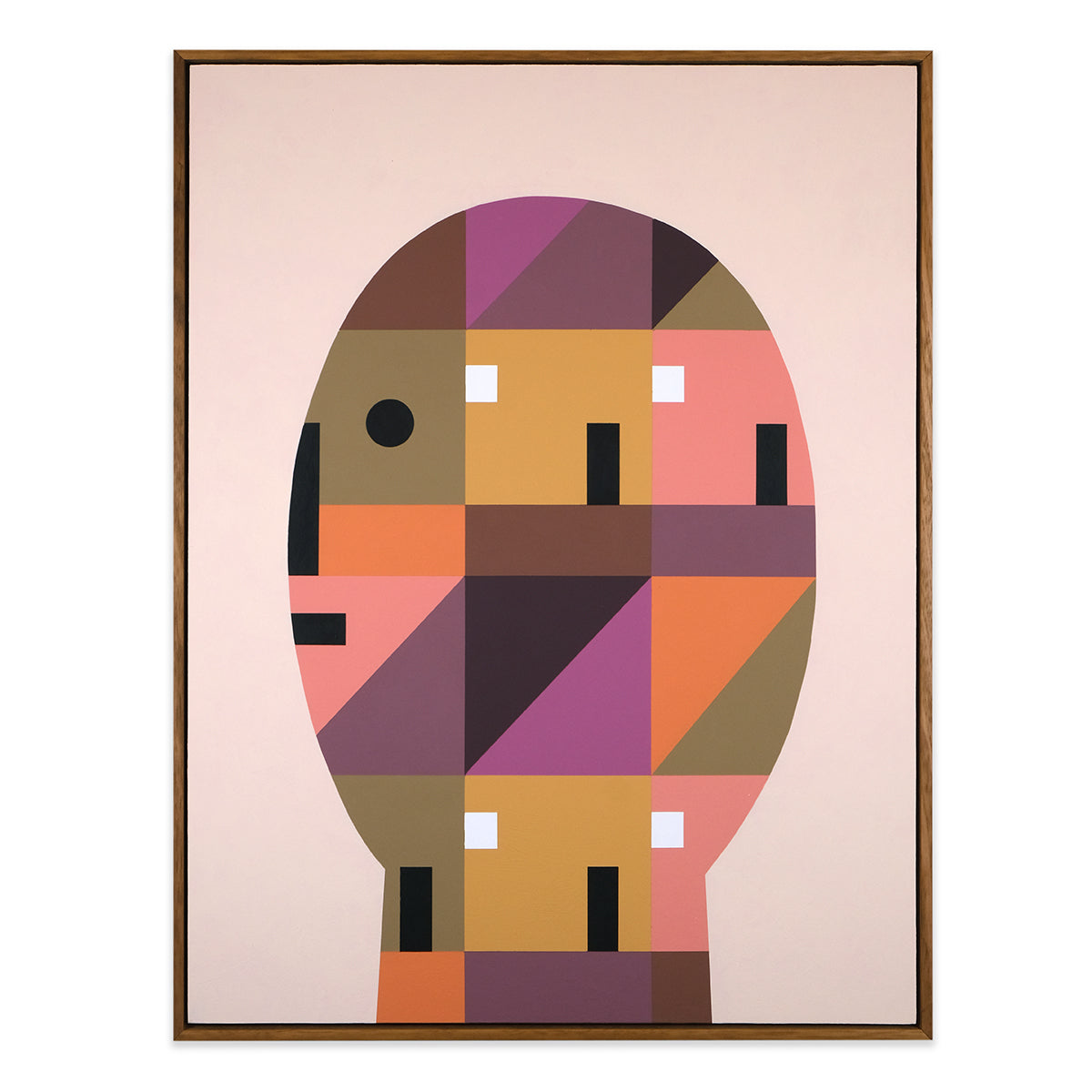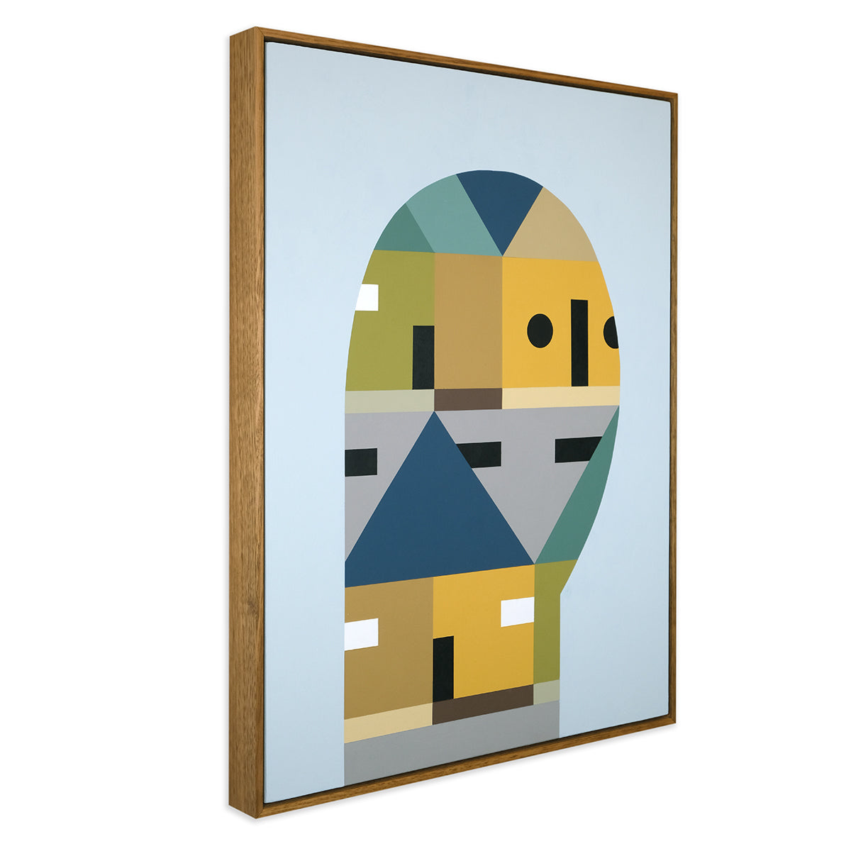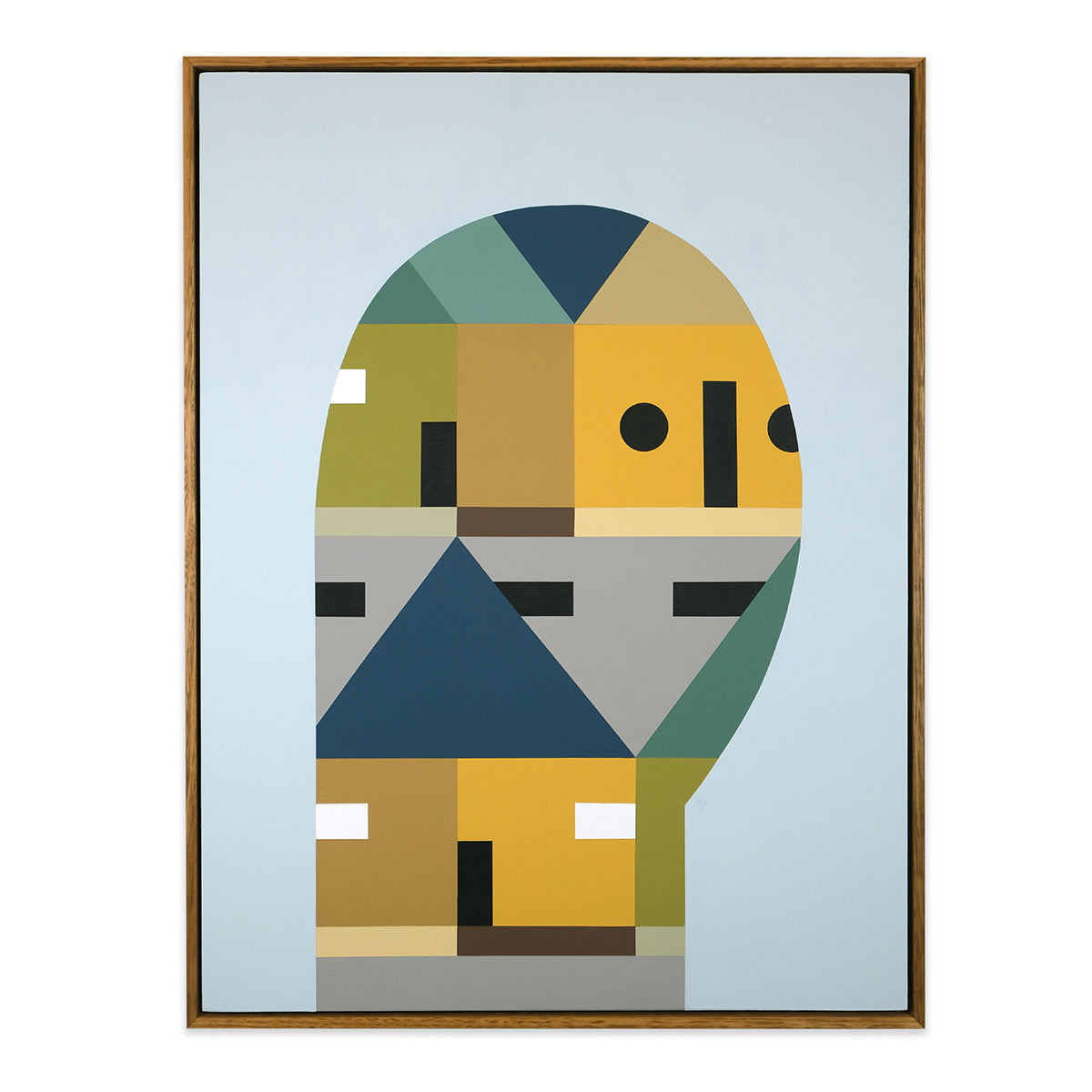 The series of paintings Louise has created expand on these ideas through a series of abstracted figures that encapsulate different structures, home comforts and the feeling of being settled in a space you build your life around and the specific outlook from there. The use of bold colours and block shapes in all her work are a fundamental part of her practice that allow her to be playful by bringing together a mix of fun and formality within her work.