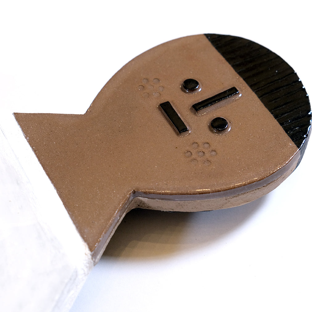 The later part of 2020 saw Louise moving home and studio, and consequently landing in new territory. Once the extended lockdown ended and people could once again move freely Louise felt like she had a child-like bounce in her step as she explored the unfamiliar neighbourhood in the fresh light of springtime. Big Kid and the surrounding Sunday Sun ceramic pieces are a reflection of the feeling of being unburdened by the world and instead just revelling in the moment to simply enjoy being out and about.