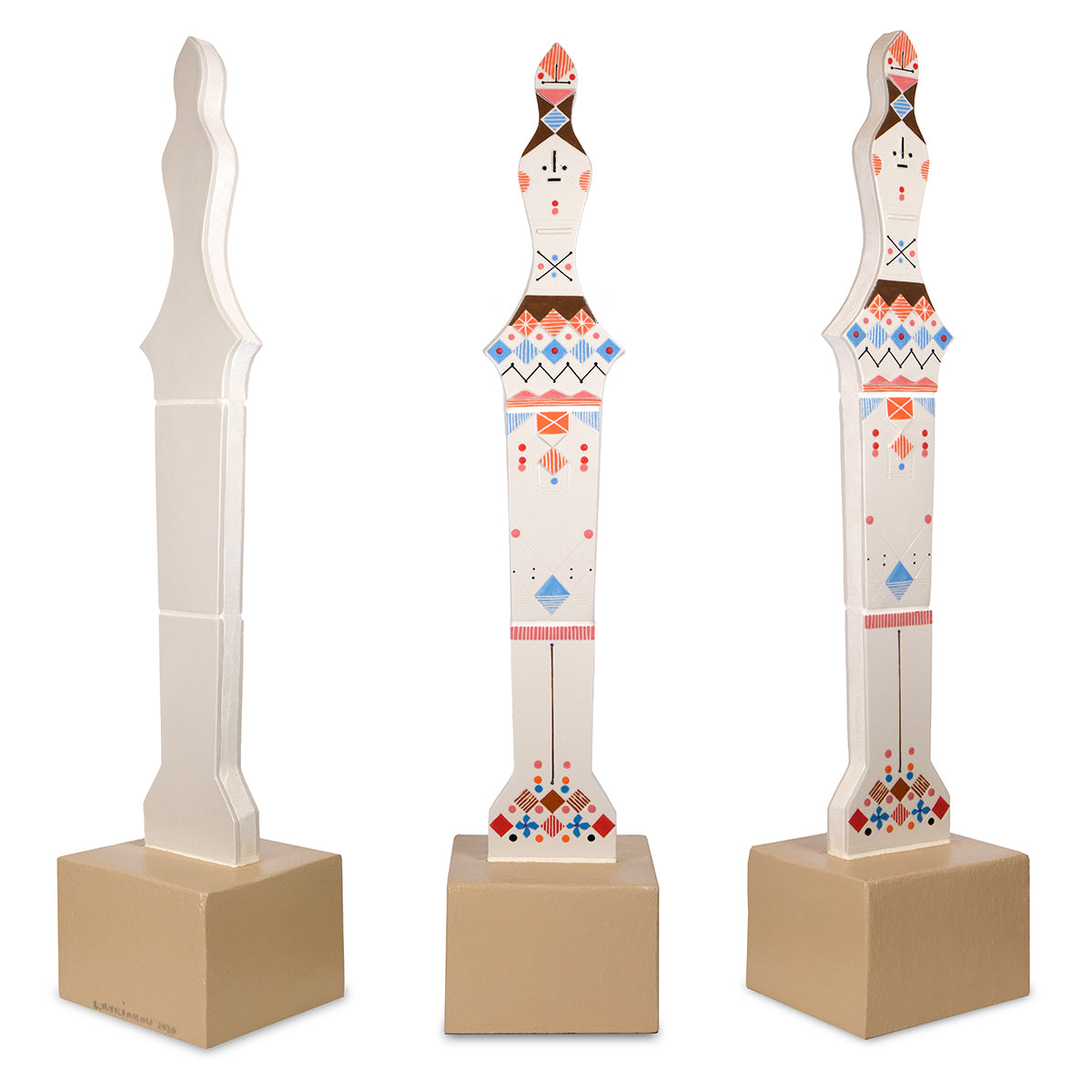 In contrast to her mainly black and white ceramic work, Louise's painting is filled with bright colour and bold geometric compositions. Her interest in graphic design and Modern Art is evident in all her work, but making the work have her own distinct style, rather than an imitation of those before her, is an important aspect of her creation process.