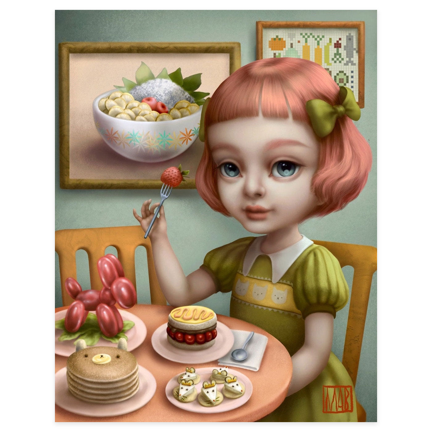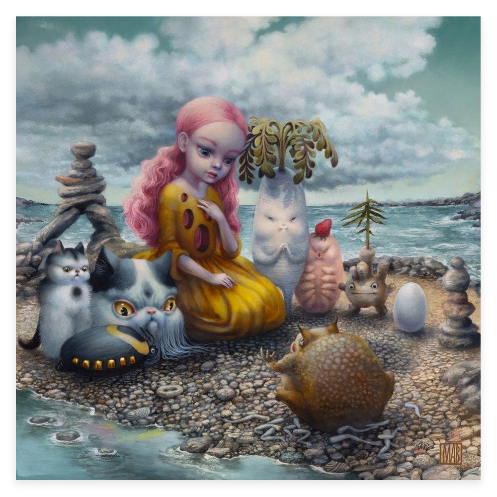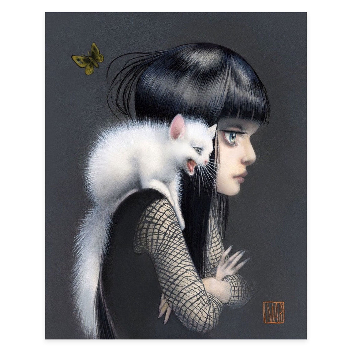 Mab Graves is a Contemporary Pop-Surrealist artist and illustrator living and painting in a converted 1800’s tavern in a small corner of the dusty American Midwest. Her work is inspired deeply by fairy tales and old classic literature. She adores narrative. She blames this on her parents who unrelentingly read aloud to her and her three sisters as small, impressionable children. Mab’s passion for creation has been an overwhelming obsession since she could grip a crayon, at about the age of 6 months. She spent her childhood and teen years adoring graphite and pen mediums (but being very suspicious of paints) until she discovered painting in early 2009, and then it was all over.