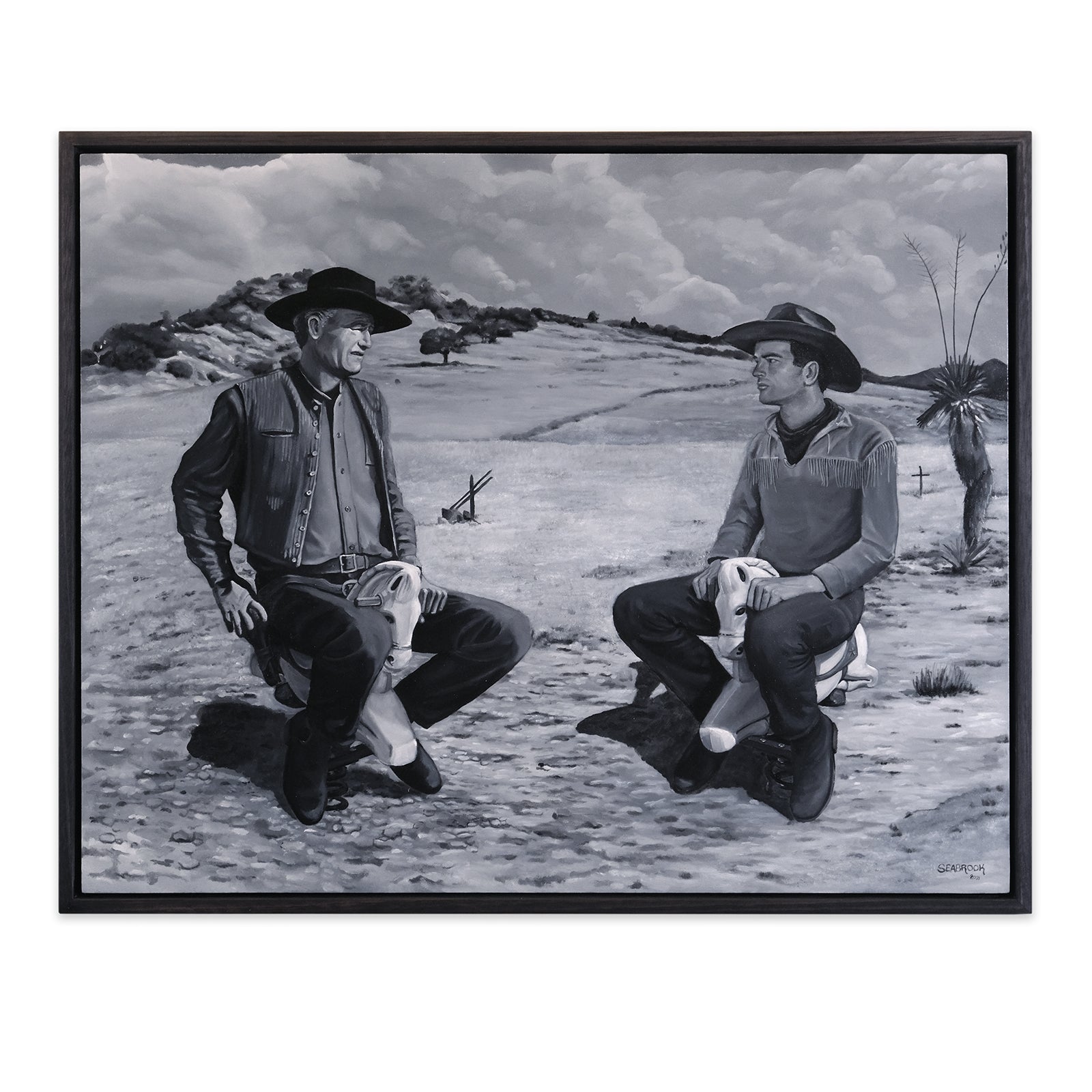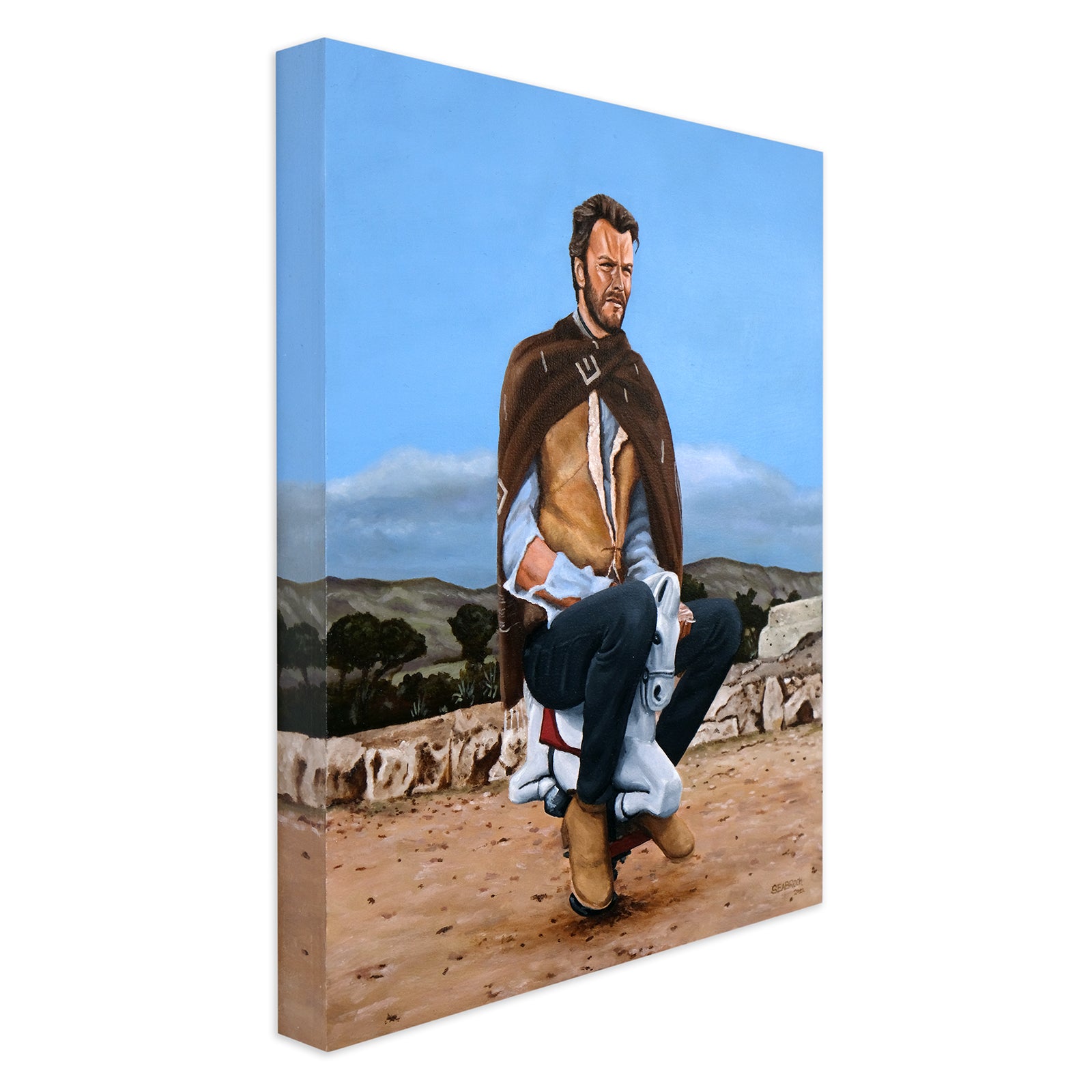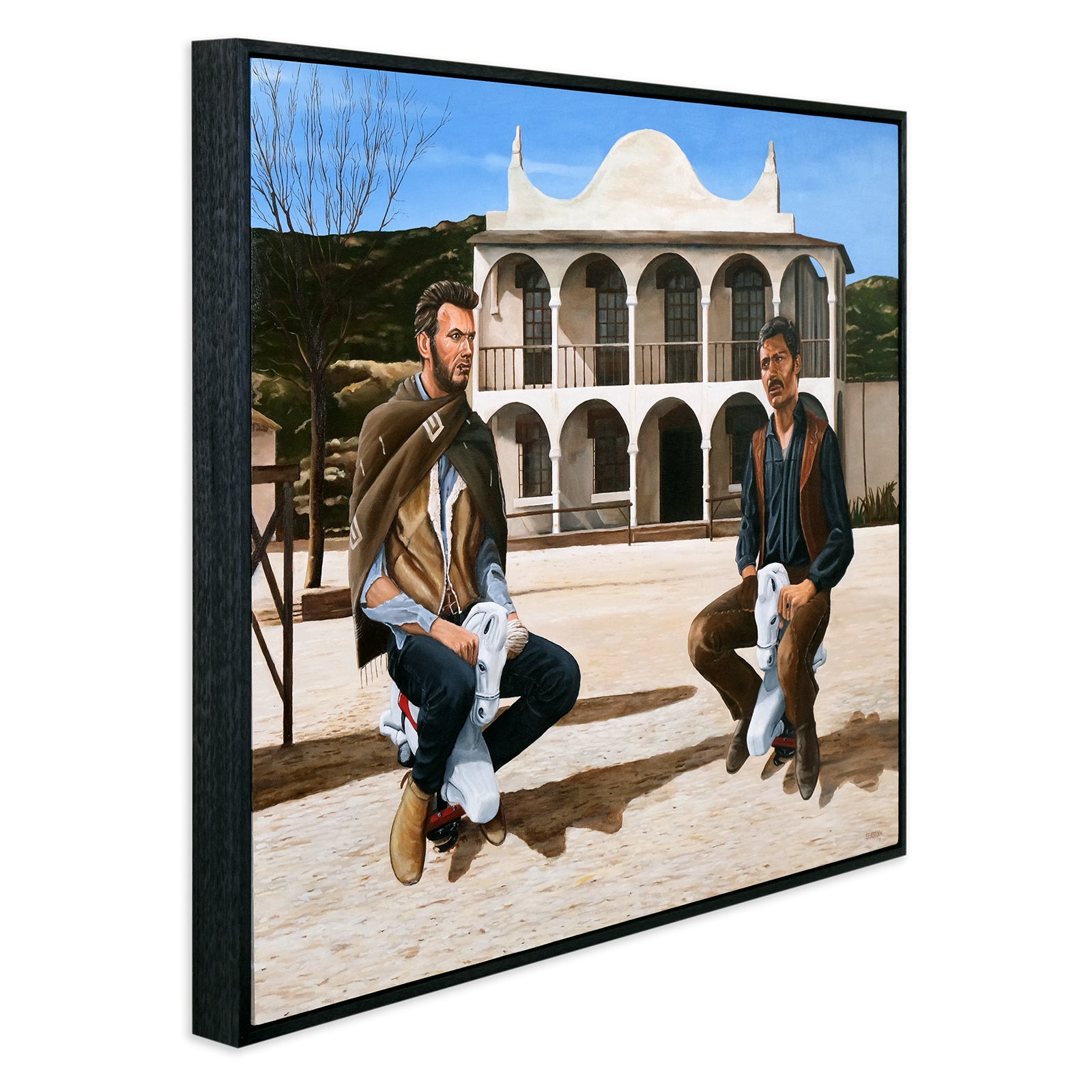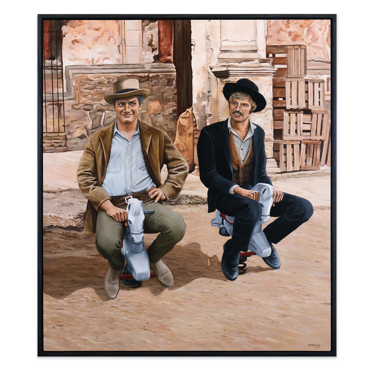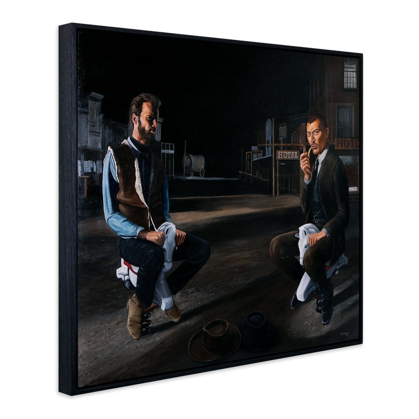 Ride on into the golden age of western movies. John Wayne in Technicolor. Whoa! Is that Clint Eastwood astride a playground pony, skewering the tough guy machismo? Or is it that how he chooses to relax? The iconography of the western ingrained itself in pop culture. Here the vistas and settings remain, but the stoic heroes portrayed in moments of repose. Behold a Pale Horsie is a series of oil paintings that invites you to join the Horsemen of the Apocalypse on a ride through Death Valley. (Can you hear Ennio Morricone?) Yeehaw!