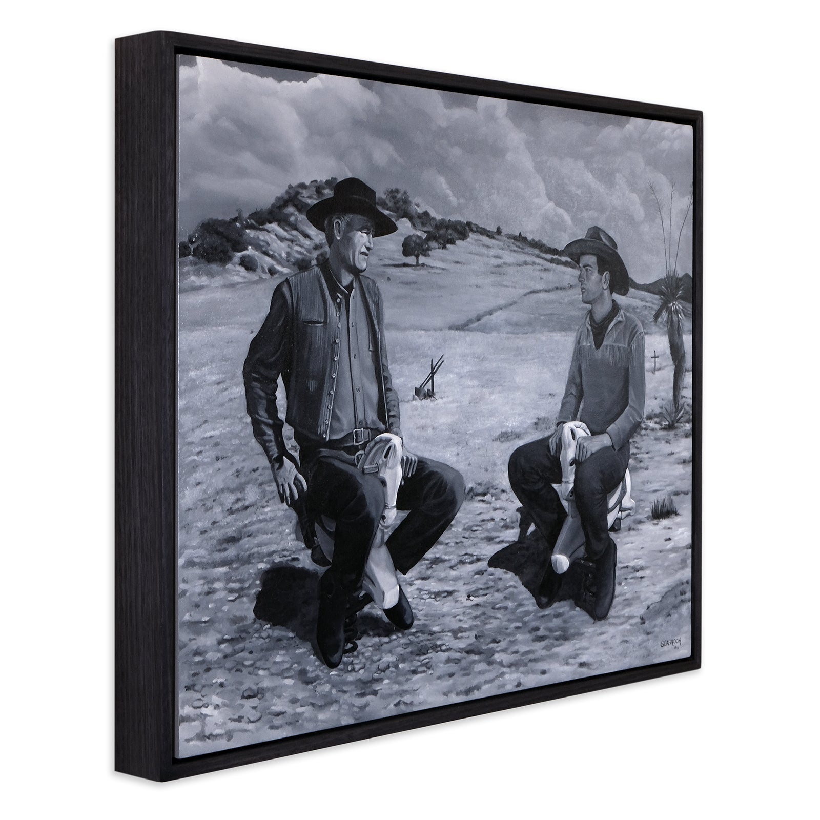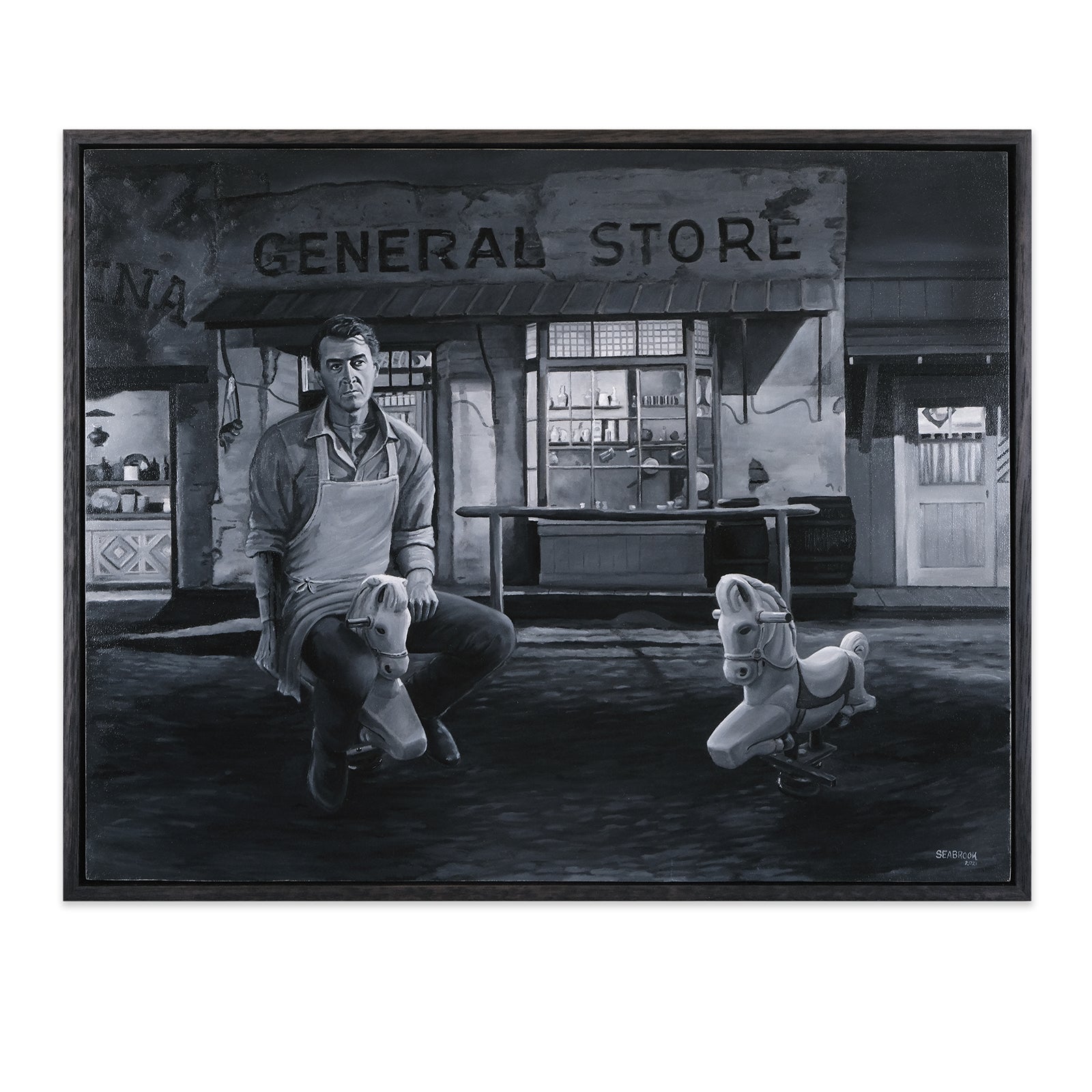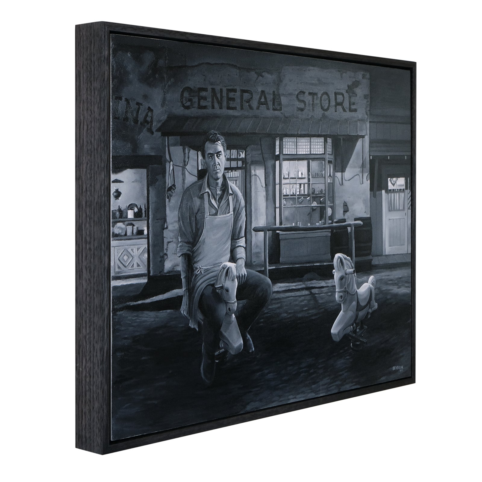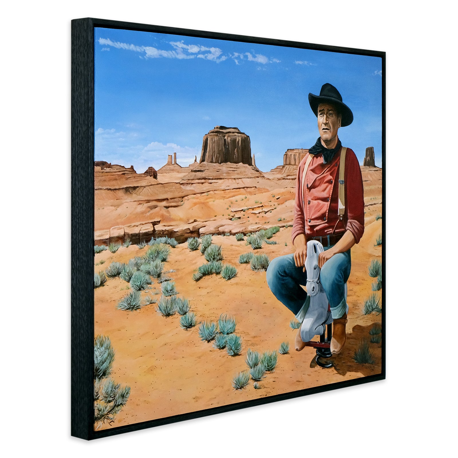 Ride on into the golden age of western movies. John Wayne in Technicolor. Whoa! Is that Clint Eastwood astride a playground pony, skewering the tough guy machismo? Or is it that how he chooses to relax? The iconography of the western ingrained itself in pop culture. Here the vistas and settings remain, but the stoic heroes portrayed in moments of repose. Behold a Pale Horsie is a series of oil paintings that invites you to join the Horsemen of the Apocalypse on a ride through Death Valley. (Can you hear Ennio Morricone?) Yeehaw!