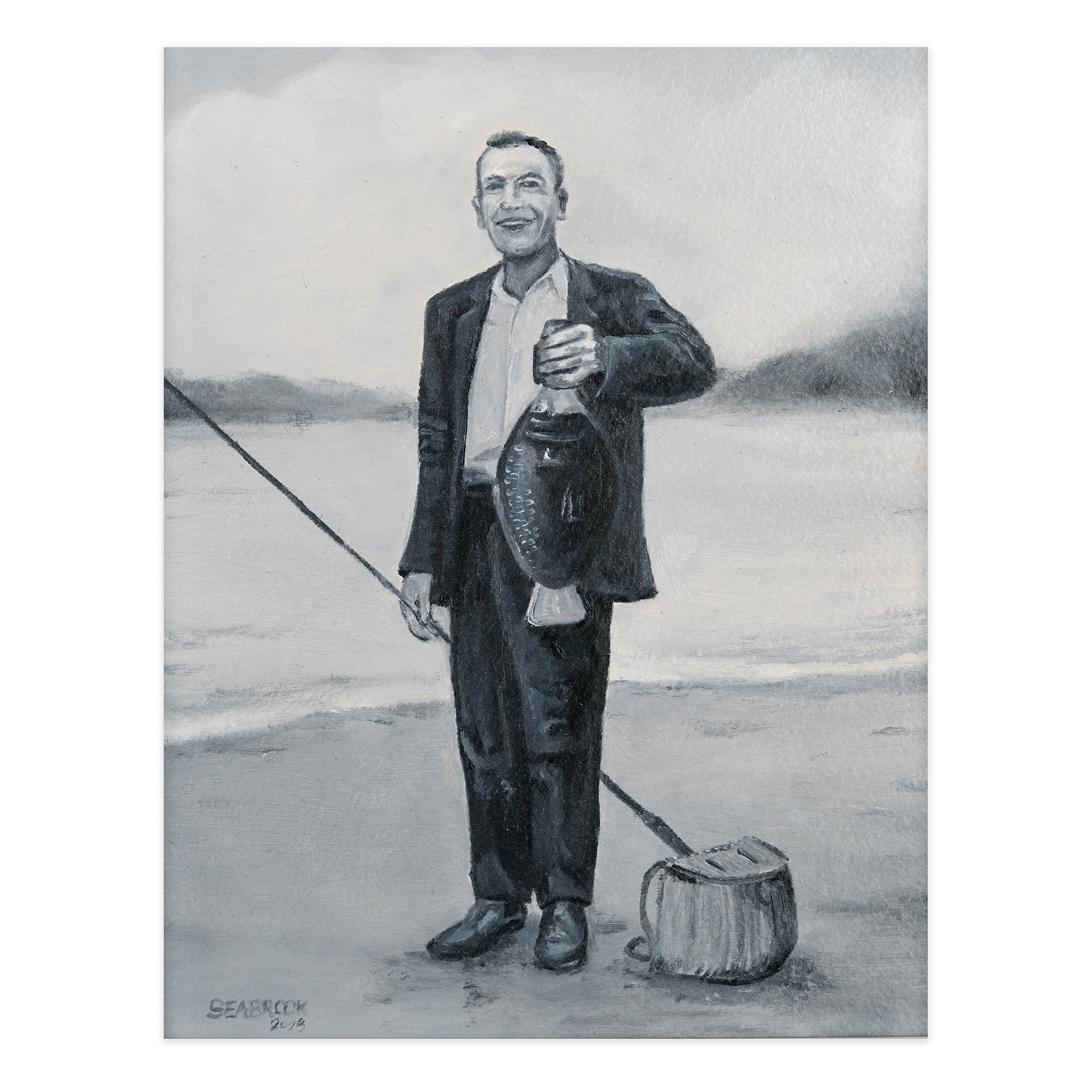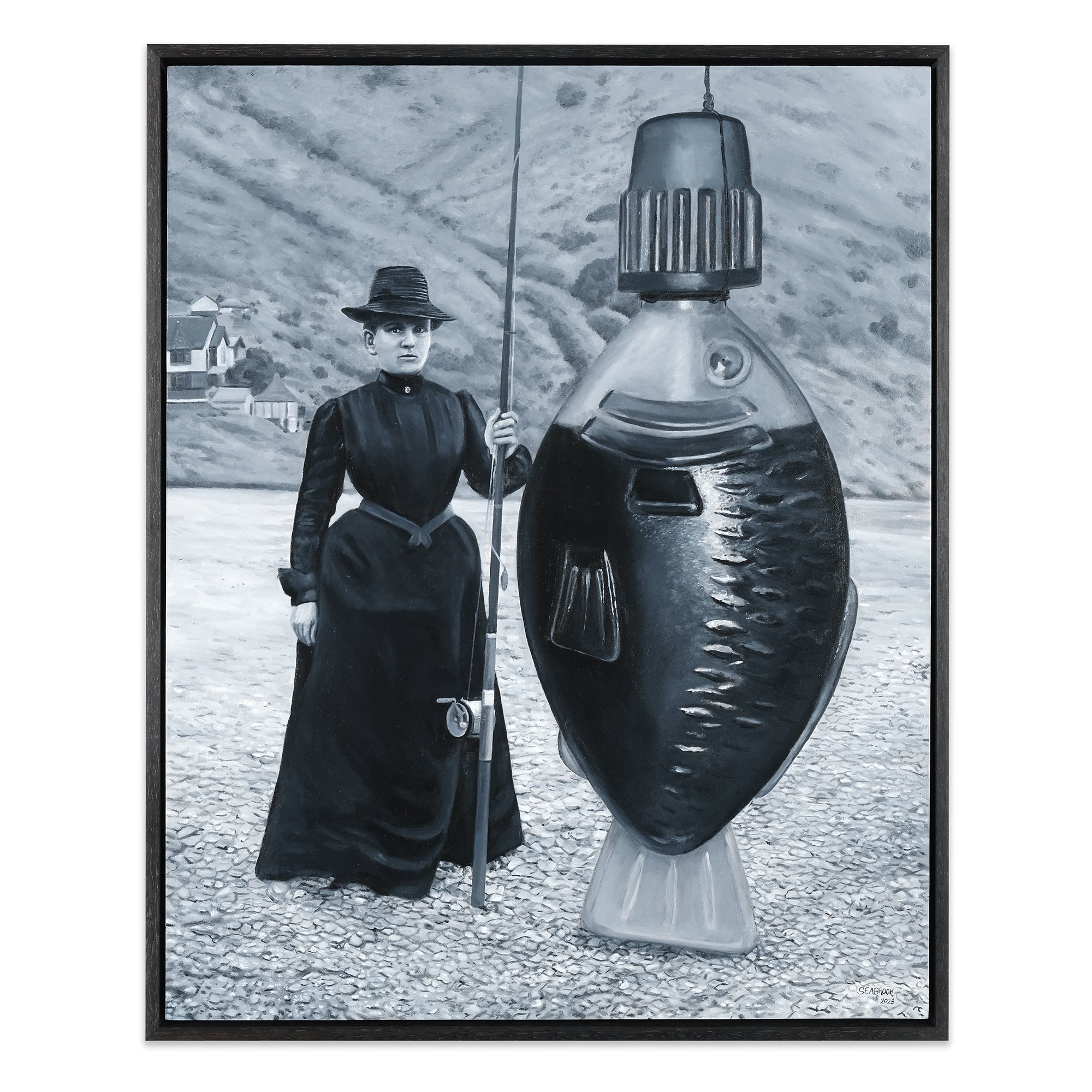 Mark Seabrook is a Melbourne-based artist and graphic designer, whose figurative works are fastidiously rendered in oils in monochrome or full colour. A self-taught painter, his Art History degree informs much of his work, along with liberal doses of pop culture, absurdism and humour. His paintings often feature unexpected elements and usually reward closer investigation with layered meanings, social commentary and amusement.