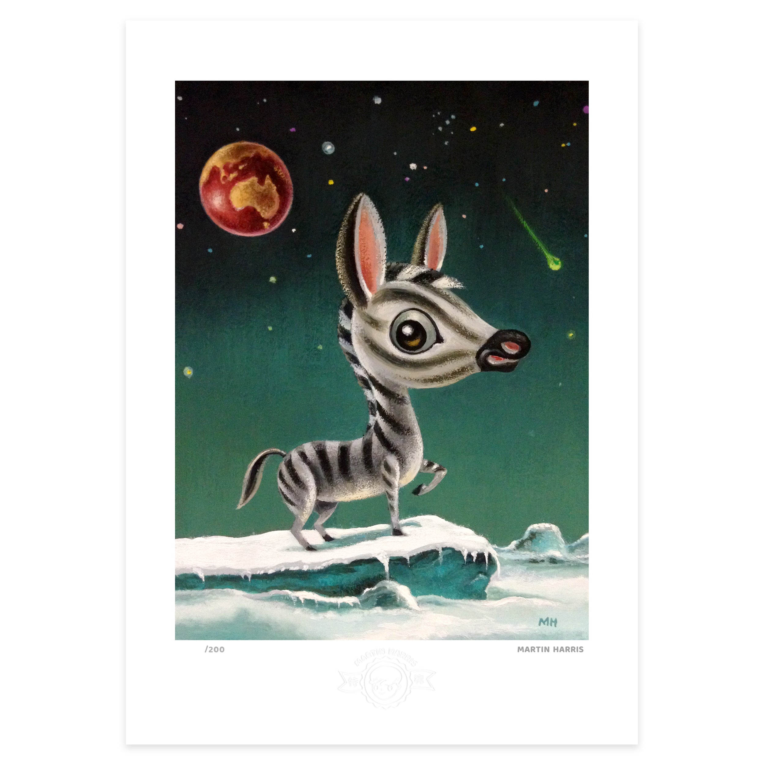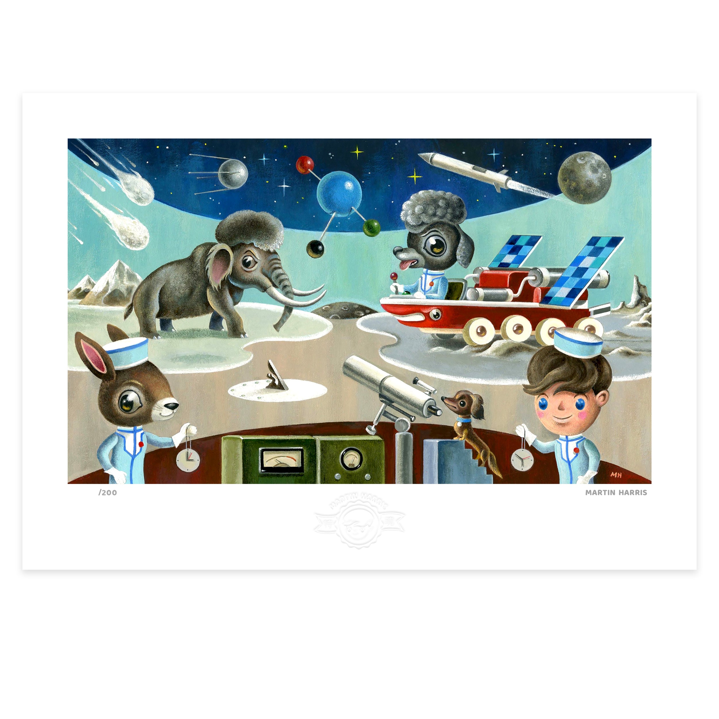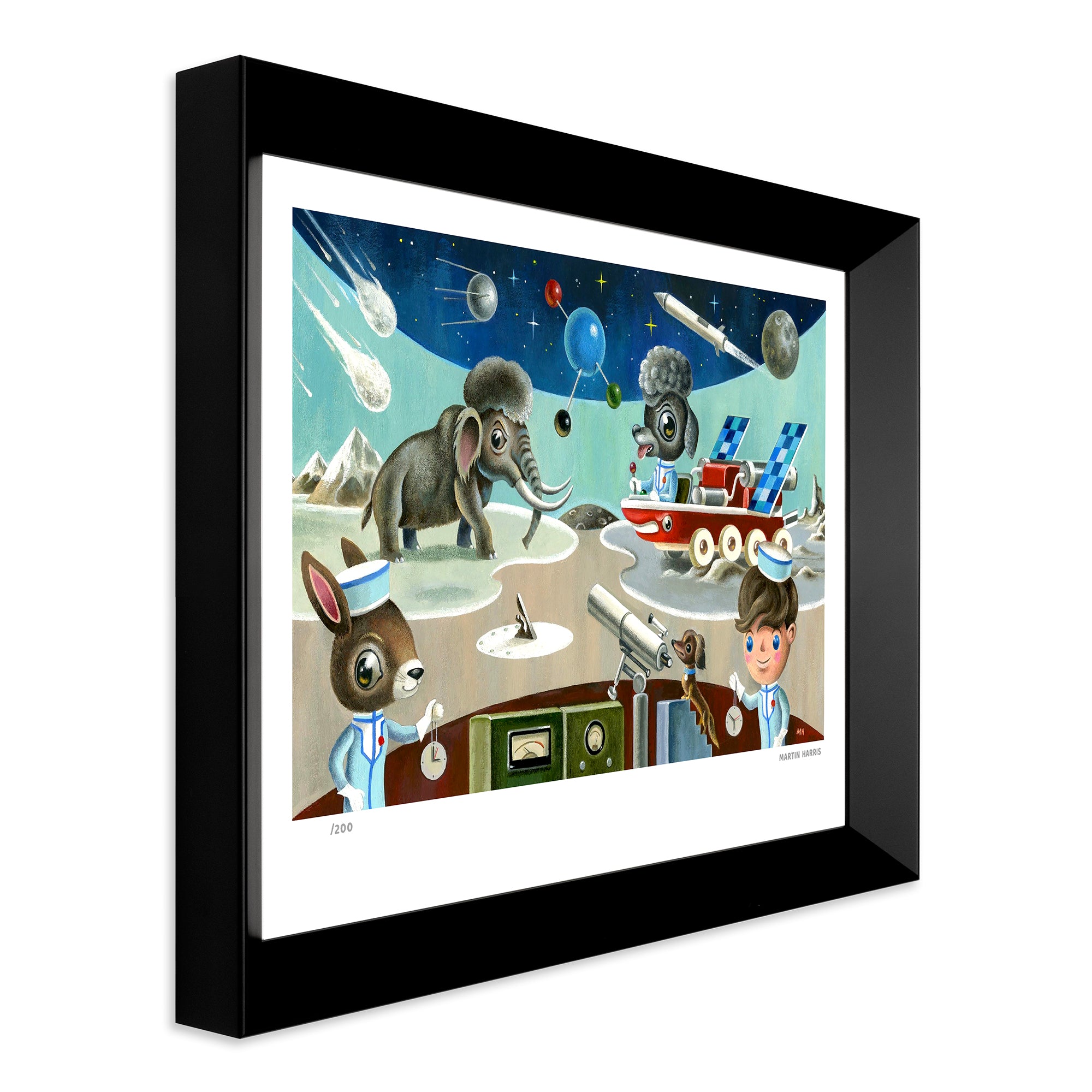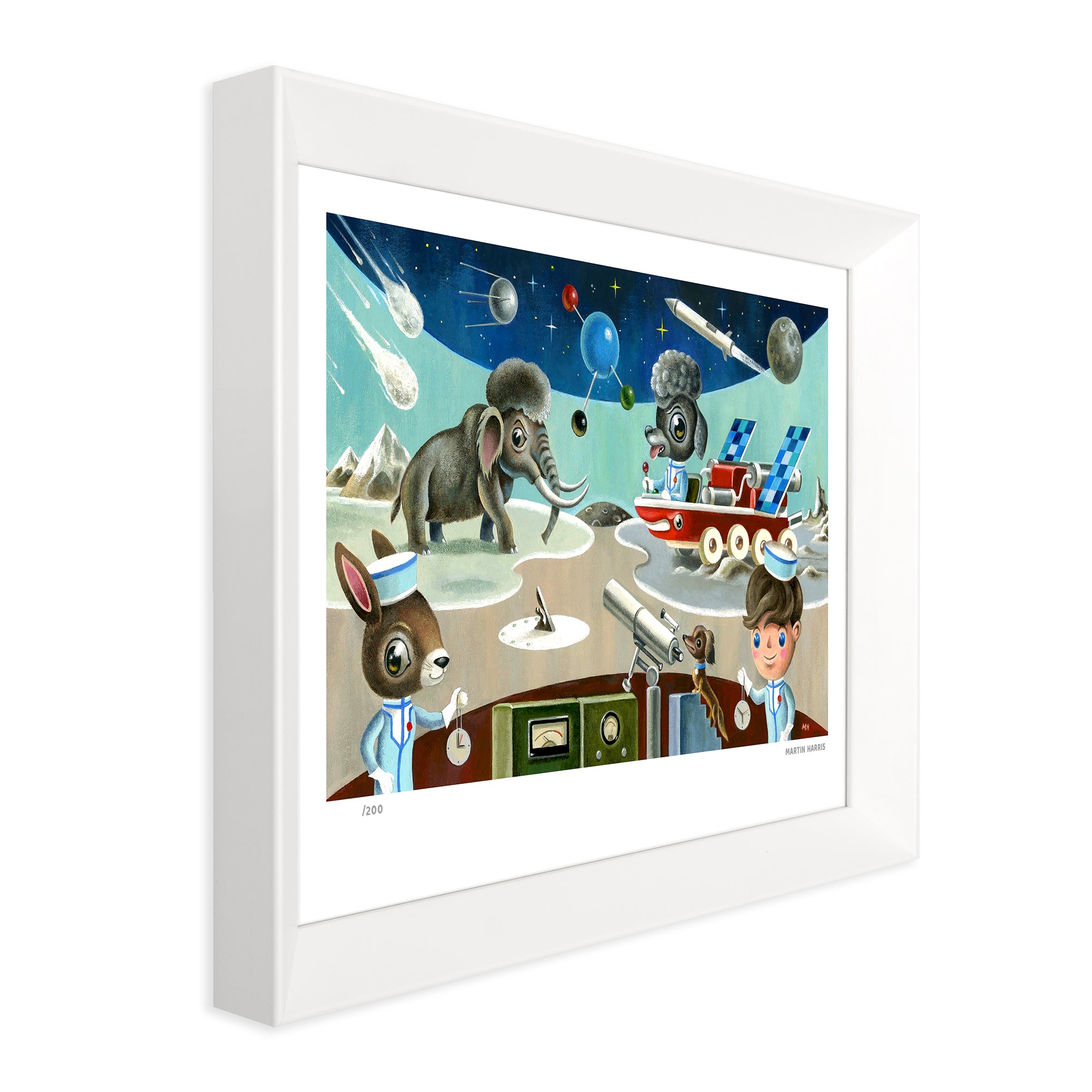 Of his art Martin said, “My pictures attempt to lift the veil as it were so that others may glimpse this ‘other world’. My fascination and love of children’s picture books, comics, toys, 1960’s television (Thunderbirds, Doctor Who, and Pinky & Perky to name but a few) combined with my childhood memories and my love of animals are the basis and inspiration for my art."