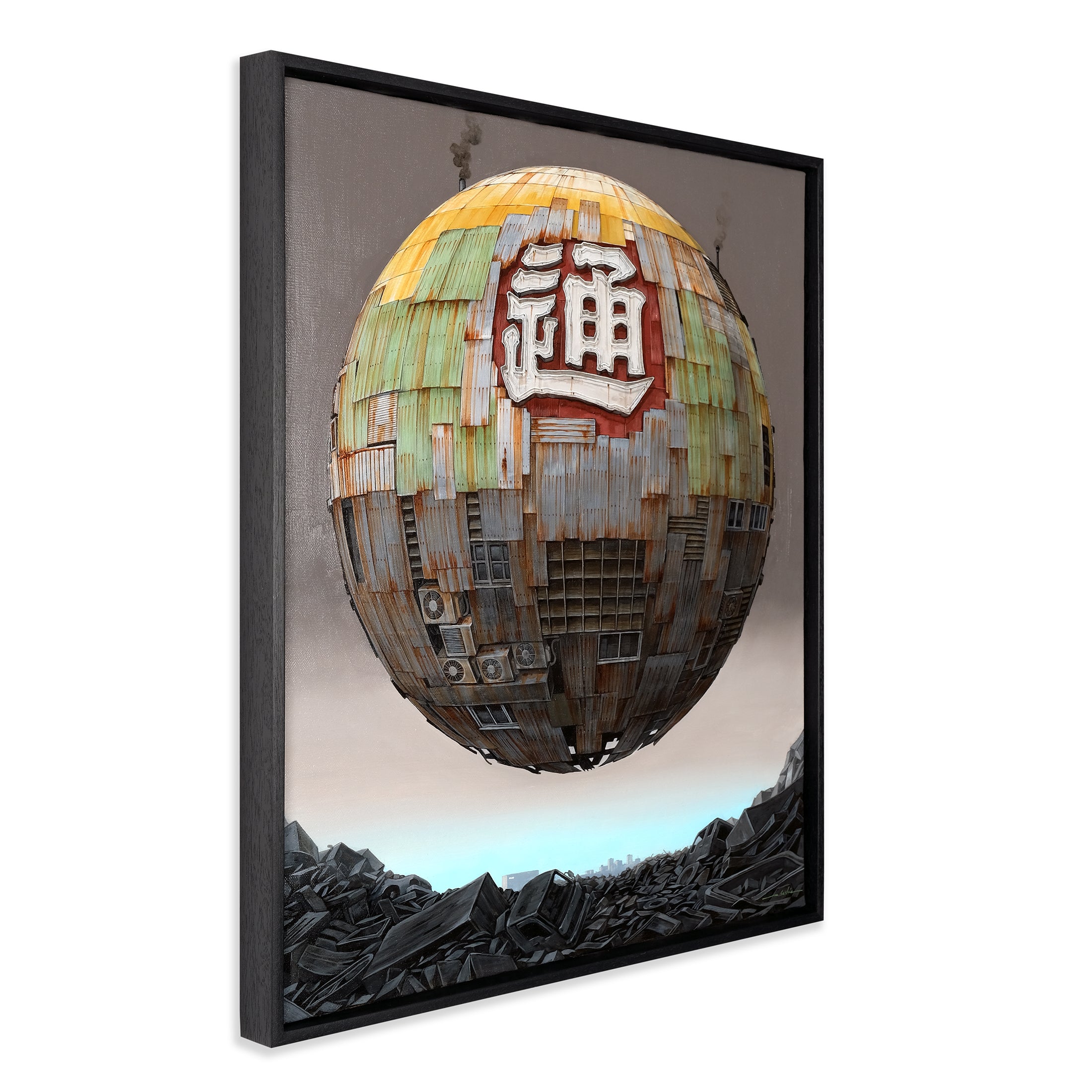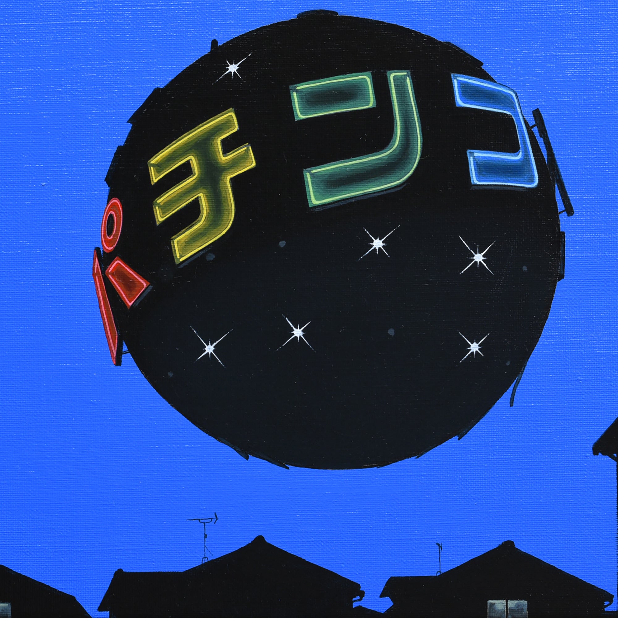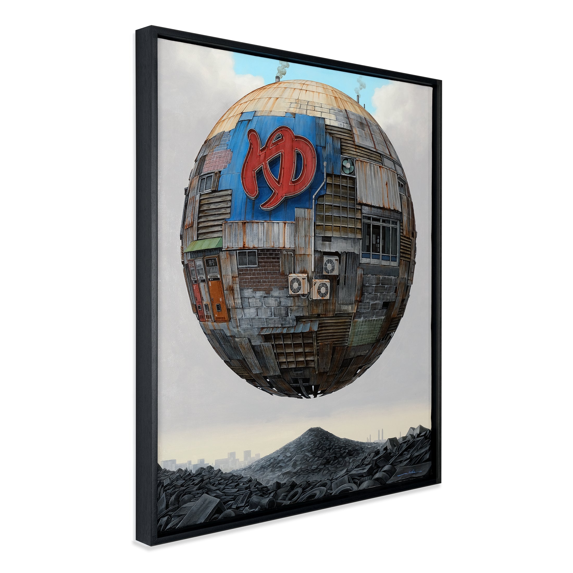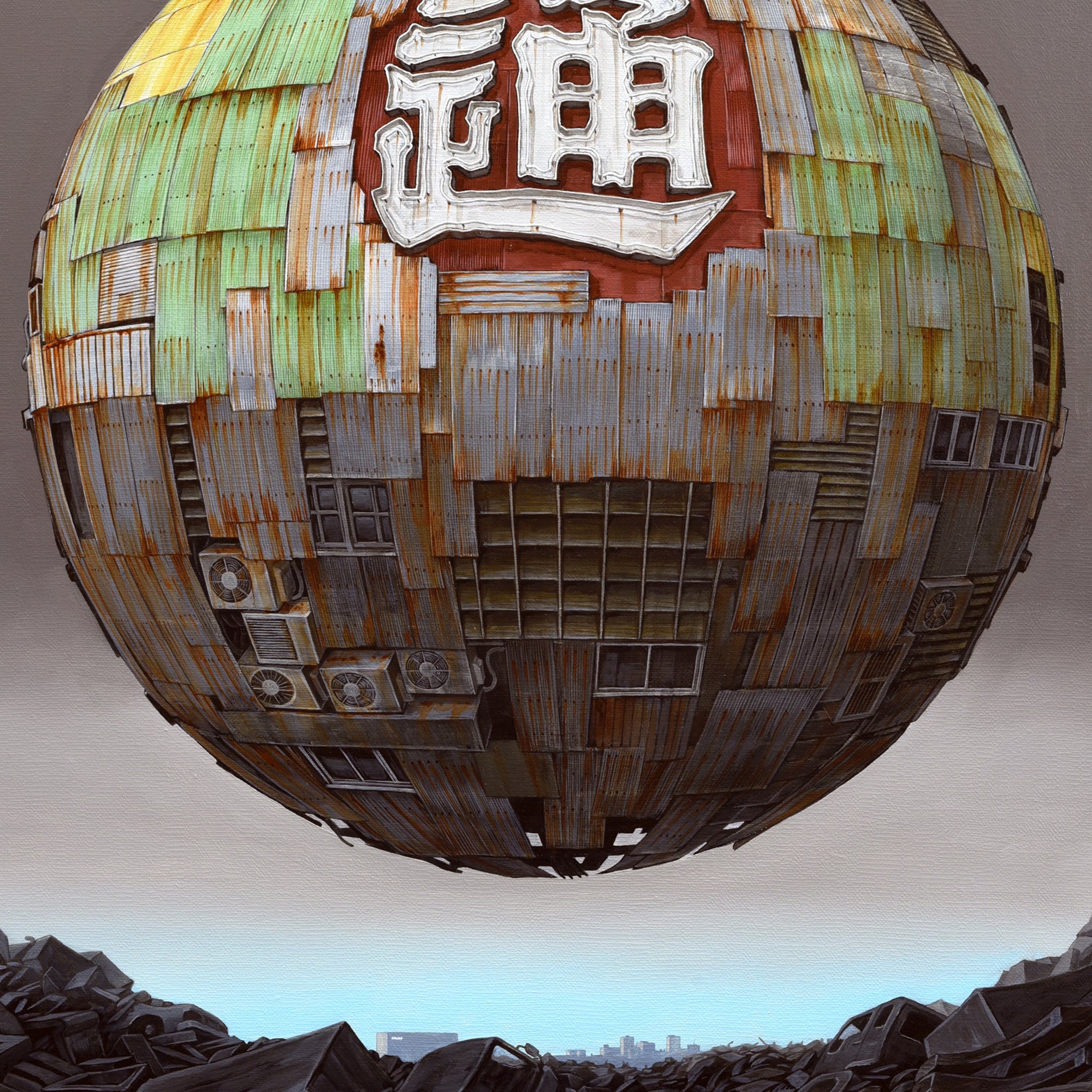 Sashie's home, Kanazawa is a miniature condensed version of the larger more populous cities in Japan. With a lifelong interest in model making and having grown up in a virtual diorama, Sashie's intricately detailed oil paintings depict a world where the common objects of modern industrialization take on often oppressive forms. These haunting vistas are often dominated by an orb, a substantial figure, made of an amalgamation of the remnants of human existence. The contrast between the detail and complexity of the orb and the surrounding environment impresses upon the viewer the co-existence of small microcosms within the larger outer world. Without showing preference to either world, Masakatsu Sashie paints two opposite worlds as equals with the intent of drawing the viewer into the space and having them reflect on society and its values.
