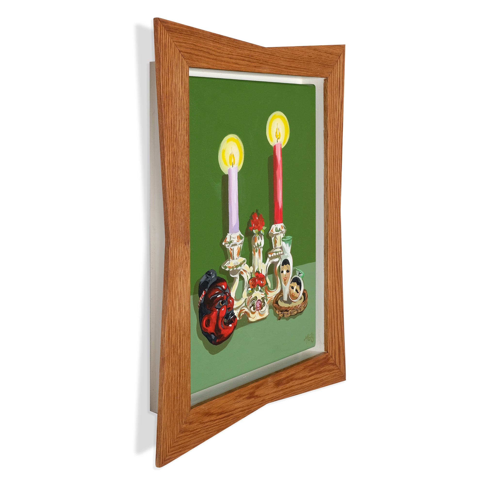 The subjects of each of the four portraits in this show were chosen in particular to capture their unique personalities and reveal their warmth and the personal connection Melissa feels to each one. In the same way, each object in every still life comes from Melissa's home, each representing a lifetime of experience, travel, and emotion as they have been collected along the way. The four colours of the title are also narrowed down from a full spectrum to four that represent a consistent throughline in Melissa's practice.