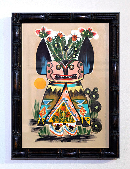 Acrylic and gouache on paper. Framed in bamboo frame.