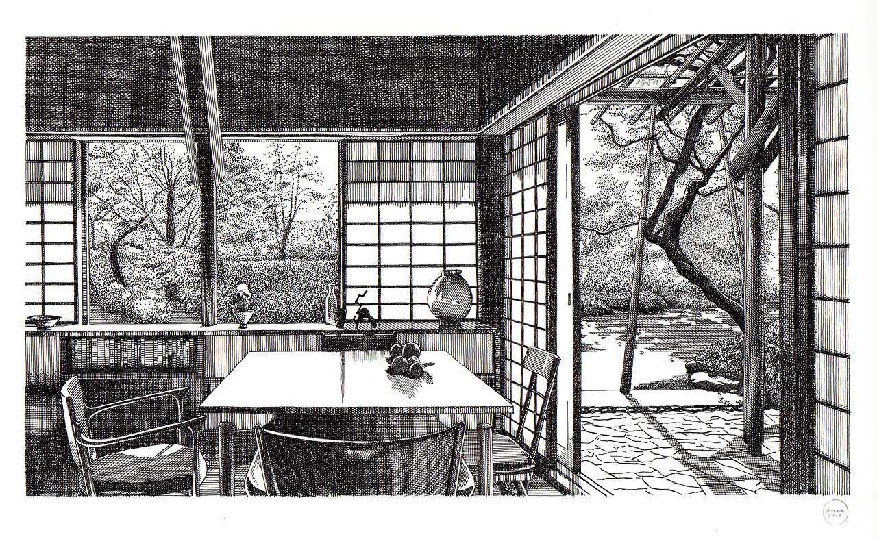 Medium: Ink on bristolboard, framed in new charcoal retro timber frame and white mat