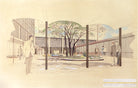 original architectural rendering - pen, ink and acetate on paper - circa 1950s/60s