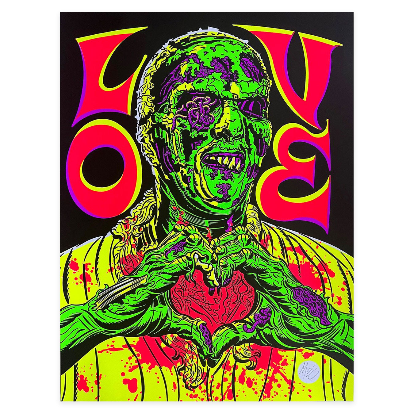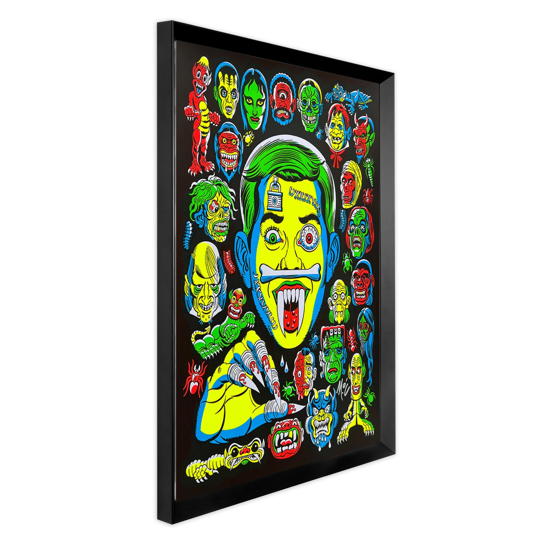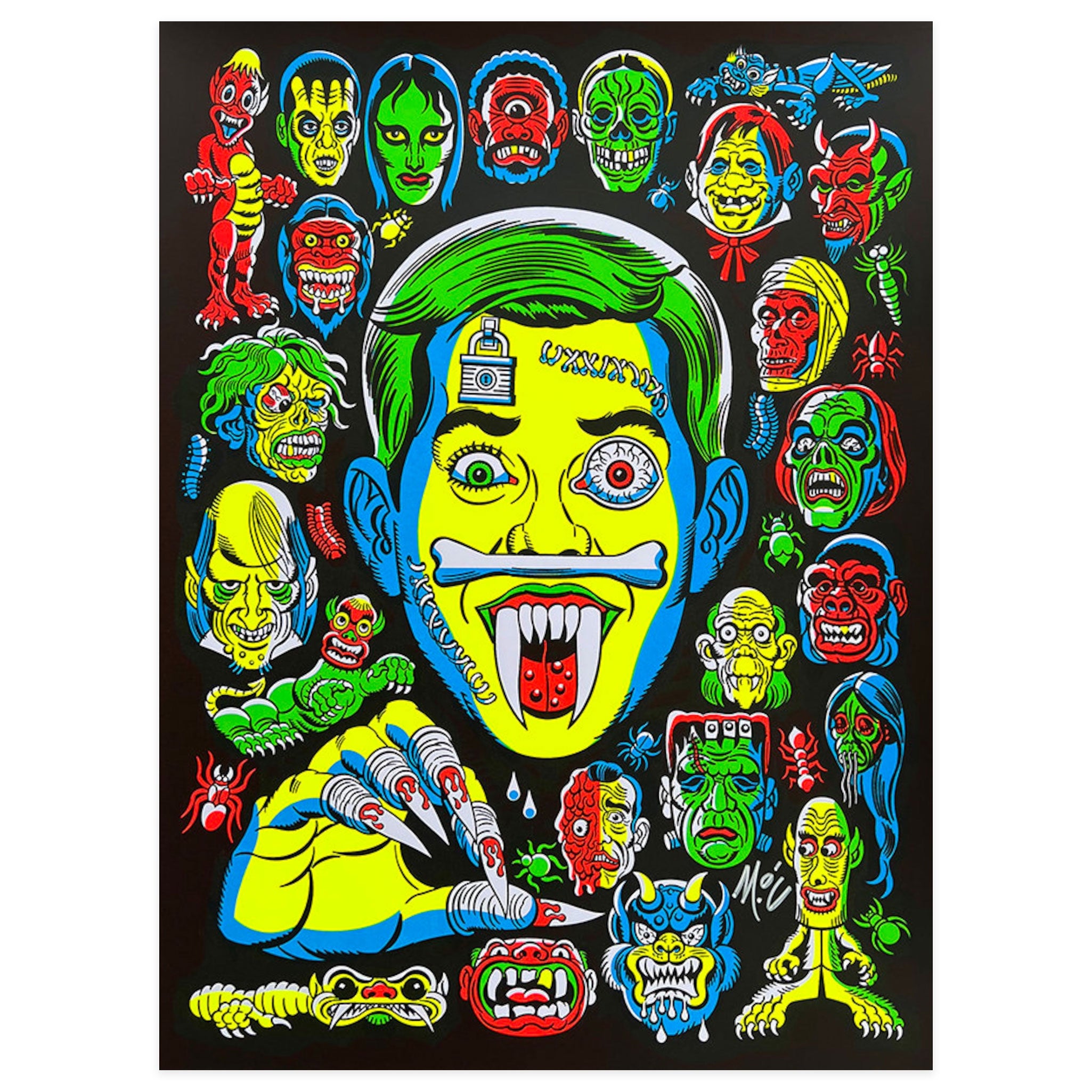 His tattoo designs are also a fixture on the walls of tattoo shops around the word. His distinctive style fuses cartoony and iconic imagery plus an innate sense of humor to create pop-kitsch masterpieces.