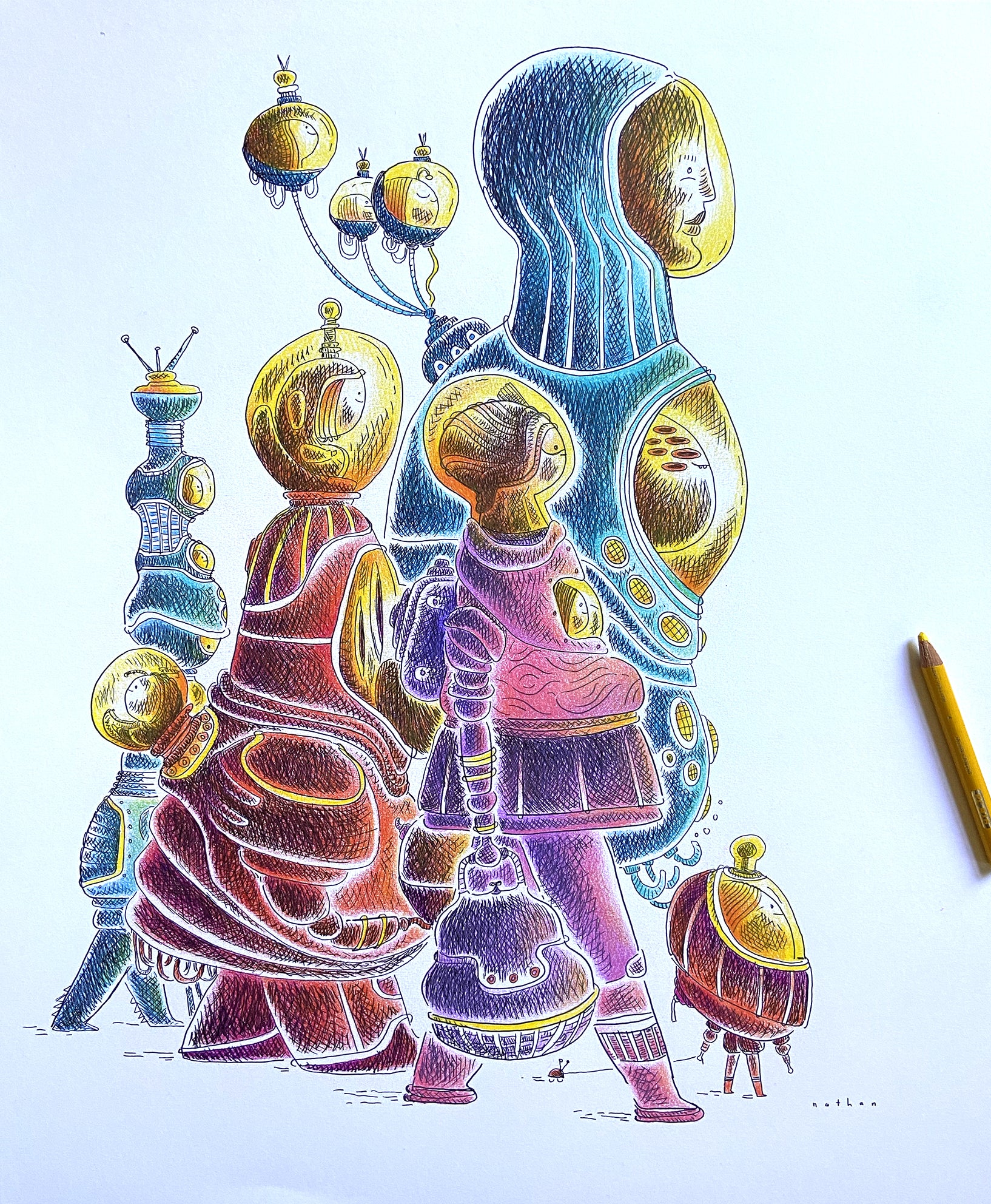 Medium: Pen with Prismacolor colour pencil on acid free paper