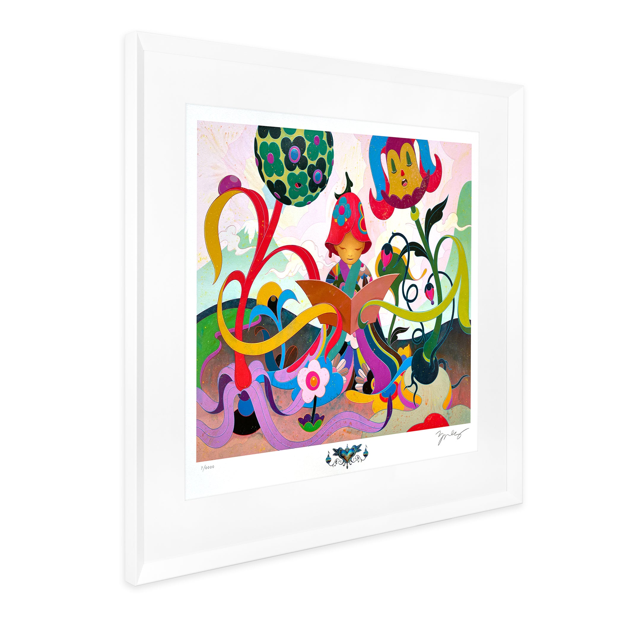 Print type: archival giclée print on cotton rag paper with special detailing including sculptural glass-like details and enhancements, crystalline finishes and holographic linework and intricately detailed and dimensional chop