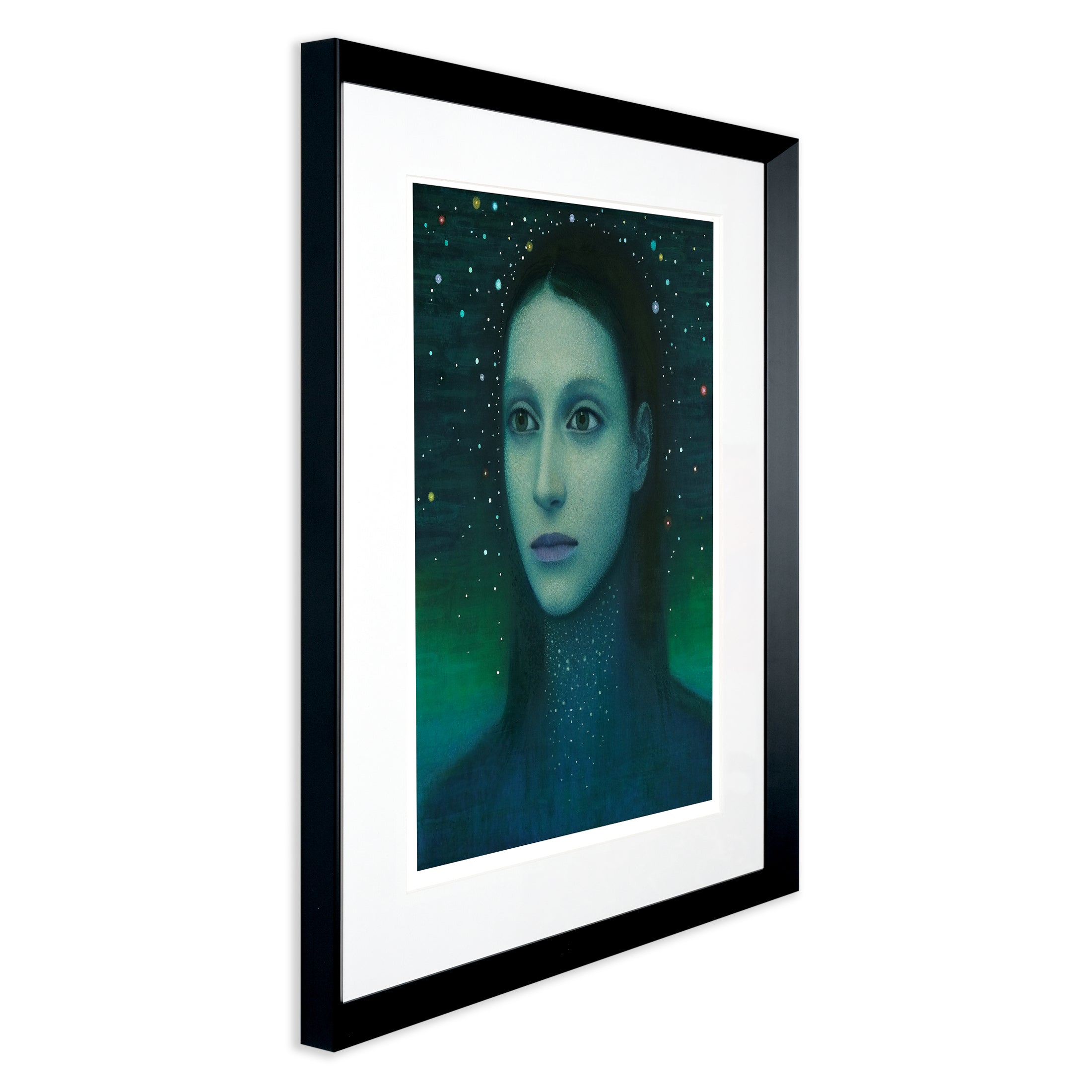 Standard frame: mini black retro frame with white mat OR thin black box back frame with no mat / view framing style