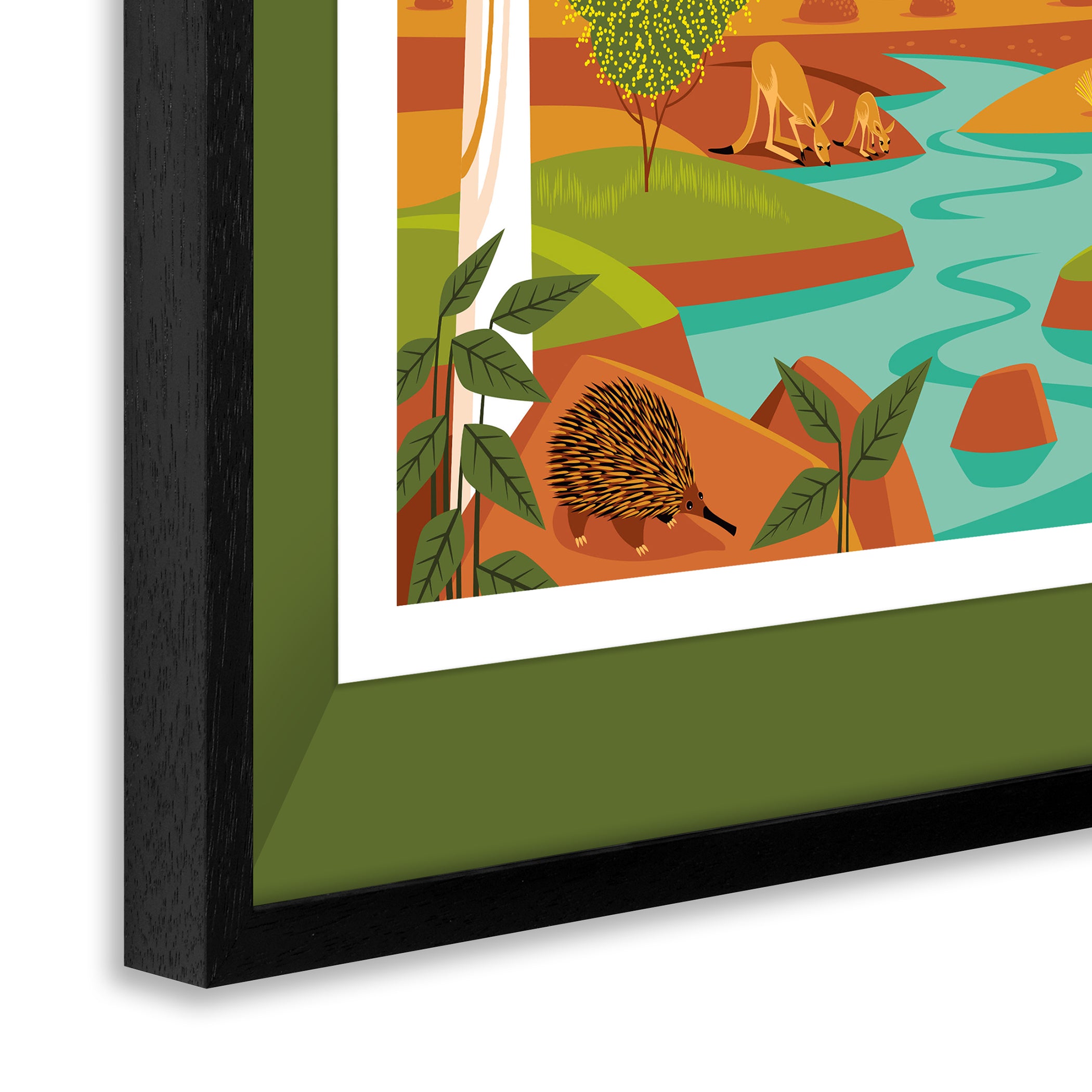 Standard frame: large black retro frame with white mat / deluxe frame - large black retro frame with coloured wooden liner / deluxe frame - large black box frame with coloured wooden liner