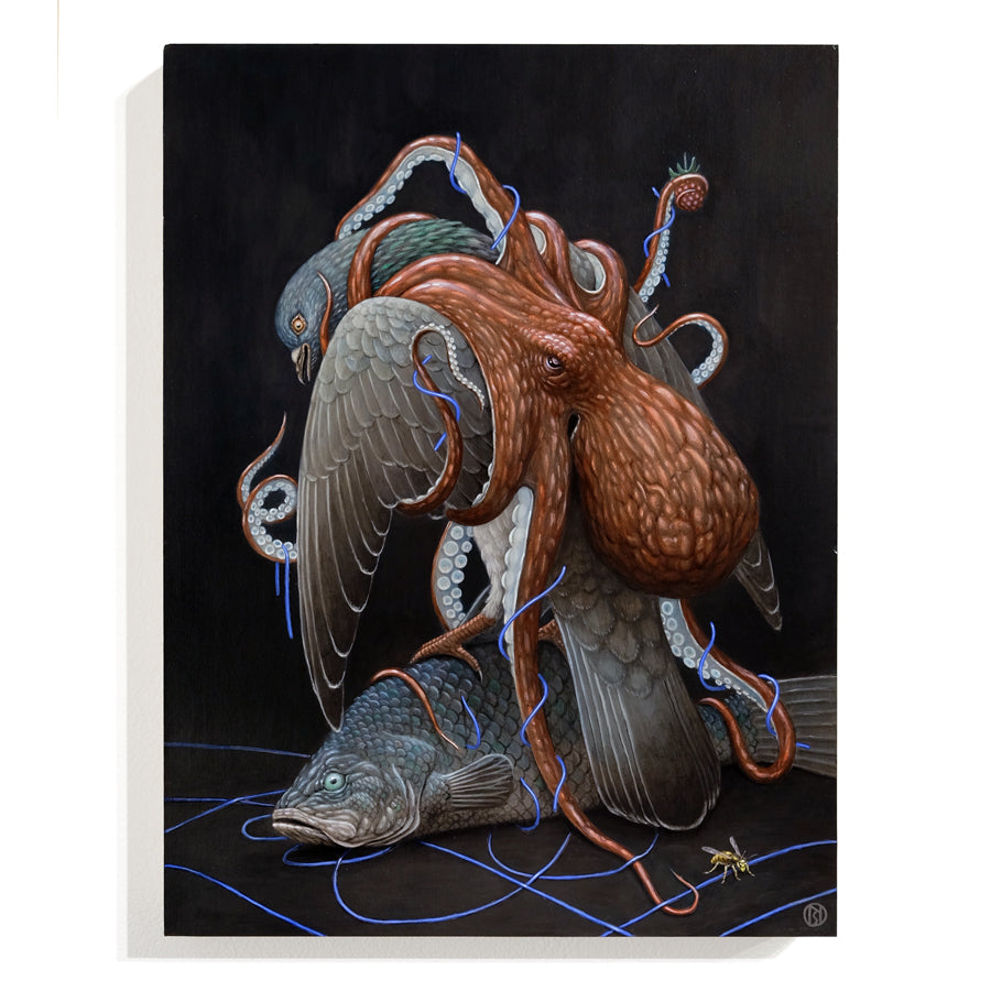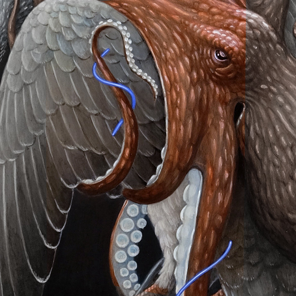 Nick Sheehy is an Australian-born artist and illustrator living in London. After studying bronze sculpture in the wilds of Tasmania, Nick gave up on art only to rediscover his love of drawing whilst living in London, sparked by an interest in the city’s low brow art, illustration, street art, and graffiti. His show Cloaked will feature original paintings and new prints that play with mystery and layers.