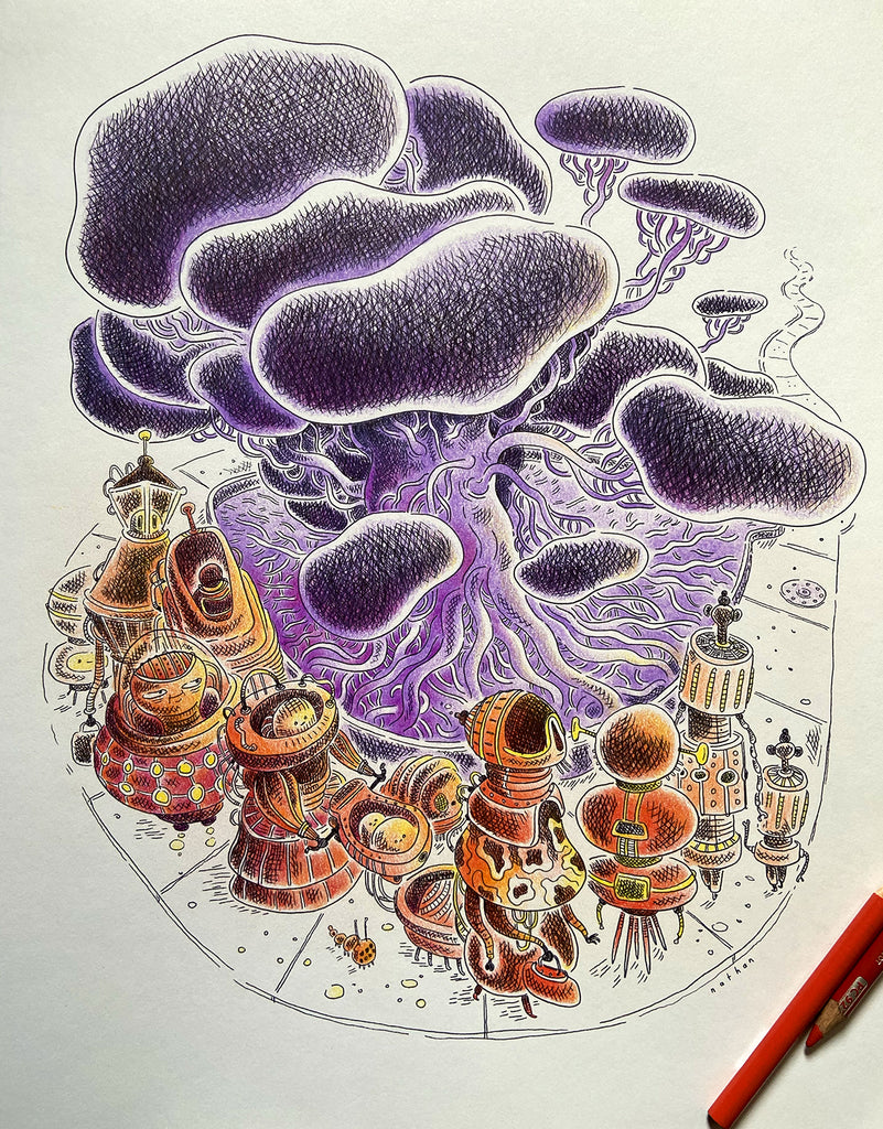 Medium: Pen with Prismacolor colour pencil on acid free paper