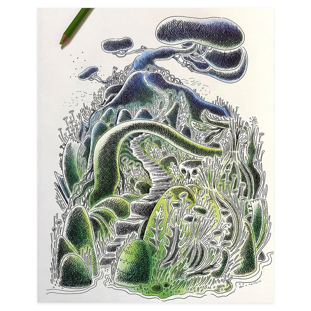 Medium: Pen with Prismacolor colour pencil on acid free paper