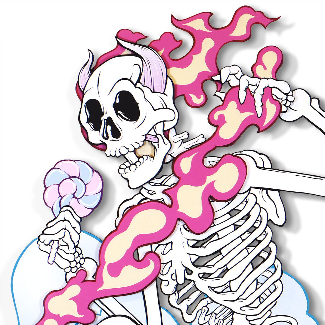 Jordan Debney is a New Zealand-born Australia based artist specialising in illustration, streetwear graphics and light-reactive paintings. Jordan has focused on his passion for all things botanical and a fascination with the dead. His bold wood-cut paintings and hyper-coloured illustrations can be seen on clothing, brand packaging and large scale murals.