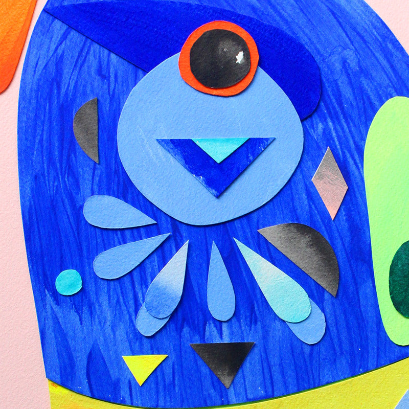 His colour-drenched paper collages are imbued with a rich sense of fun, whilst exploring relationships between shape and colour and providing his subjects with their important 'close-up' moments.