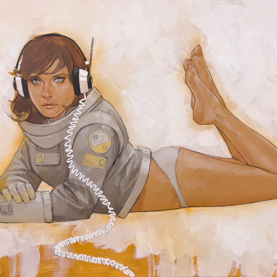 With an interest in Mid-century graphic design, his practice references printed ephemera such as retro paperback covers, 1960s soundtrack art and advertising publications. These interests are emphasized with his palette, composition and subject matter, true to the bygone era while adding a contemporary spin!