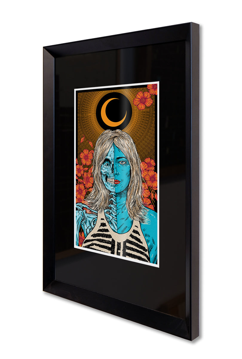 Framed size: 30 x 45 cm (Framed in a black mini retro frame with a black mat.)