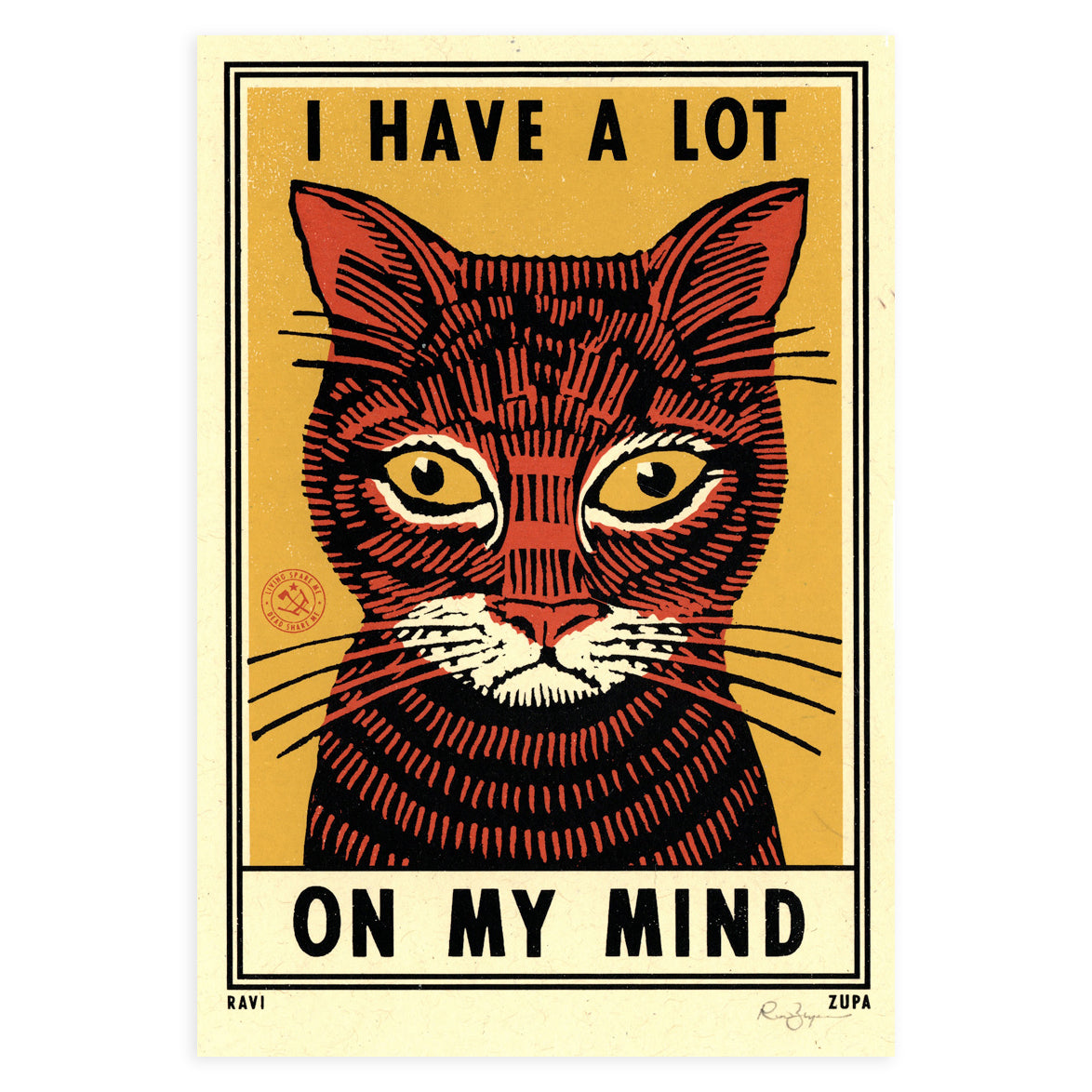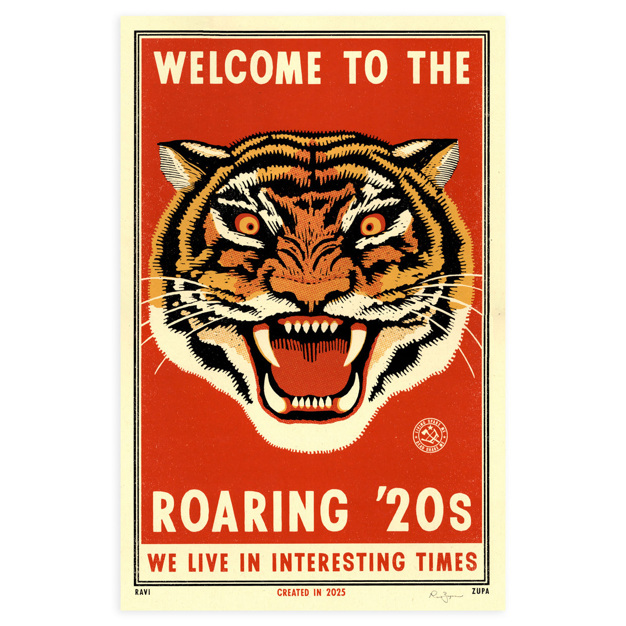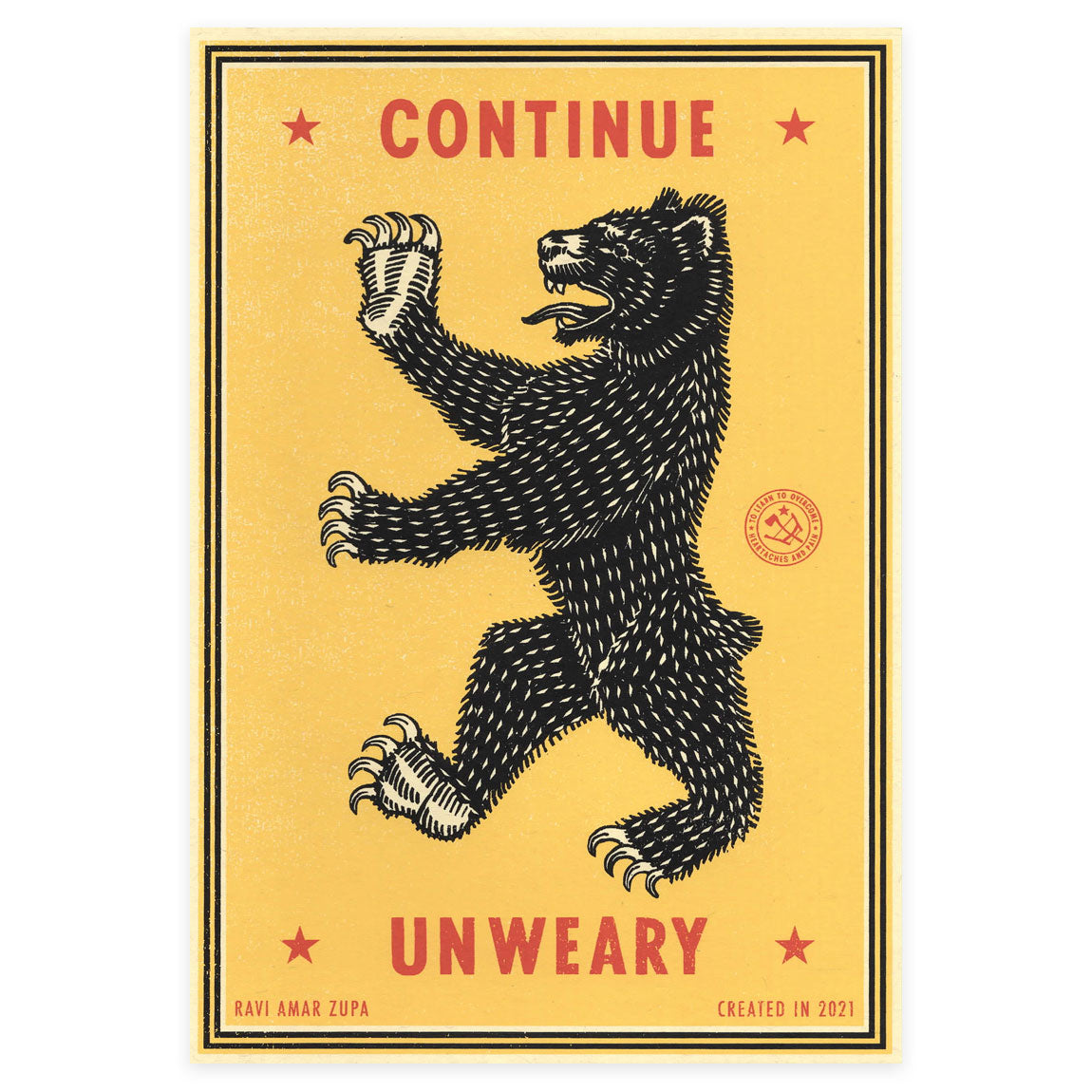 Ravi Zupa considers books the best way to experience art. He has spent decades studying books about the art, mythology, religion, and history of cultures from across geography and time. Entirely self-taught, Zupa looks to works by German Renaissance printmakers, Flemish primitives, abstract expressionists, Japanese woodblock artists, and Mughal painters for inspiration. He also frequently incorporates religious iconography from Europe, Asia, and Pre-Columbian Latin America with revolutionary propaganda from around the world. With a distaste for ironic art or the thoughtless appropriation of culture, he integrates seemingly unrelated images in search of something universal. Zupa does not create any of his art digitally; everything comes from his own hand.