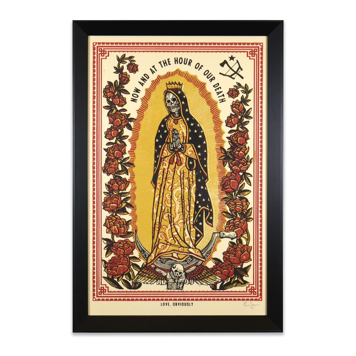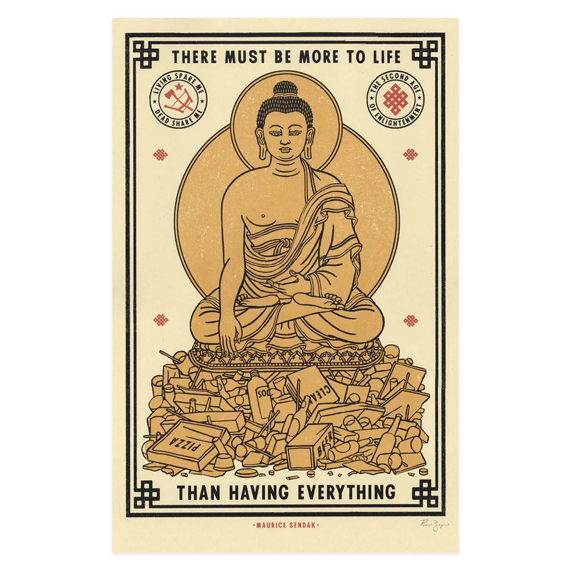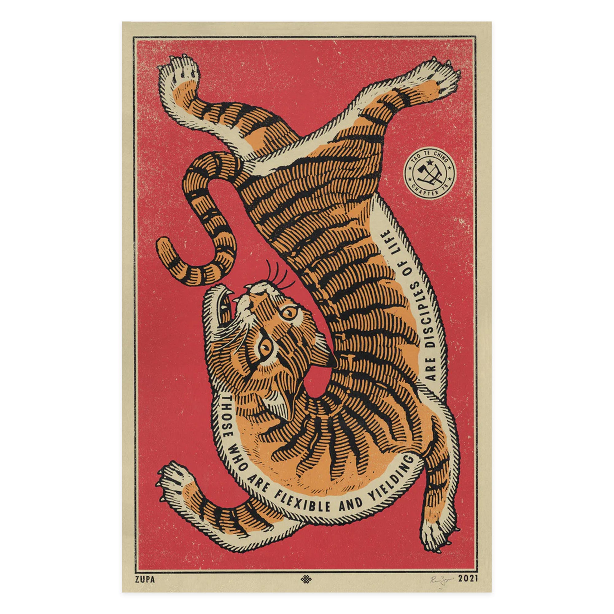 Ravi Zupa considers books the best way to experience art. He has spent decades studying books about the art, mythology, religion, and history of cultures from across geography and time. Entirely self-taught, Zupa looks to works by German Renaissance printmakers, Flemish primitives, abstract expressionists, Japanese woodblock artists, and Mughal painters for inspiration. He also frequently incorporates religious iconography from Europe, Asia, and Pre-Columbian Latin America with revolutionary propaganda from around the world. With a distaste for ironic art or the thoughtless appropriation of culture, he integrates seemingly unrelated images in search of something universal. Zupa does not create any of his art digitally; everything comes from his own hand.