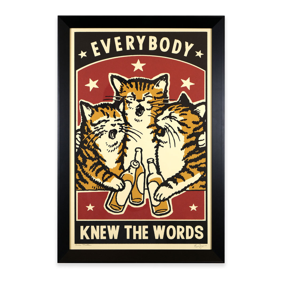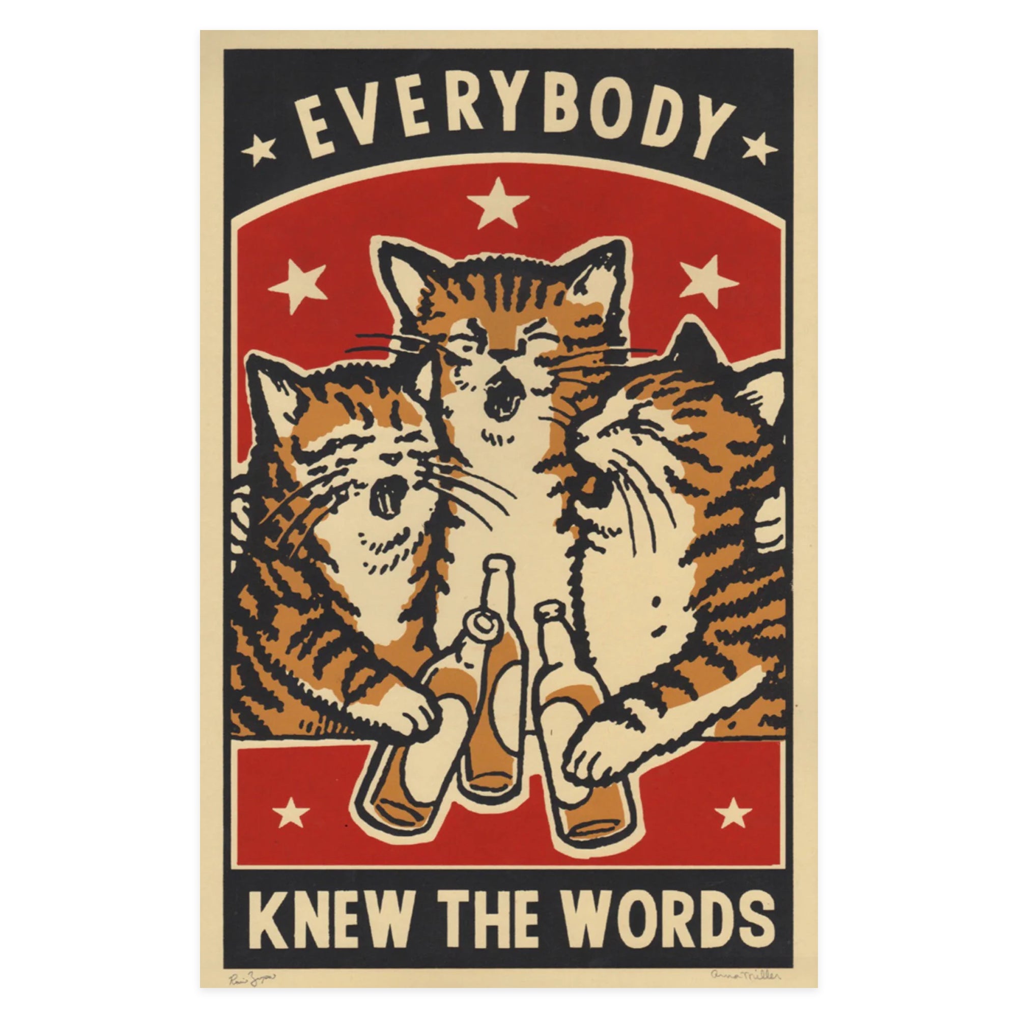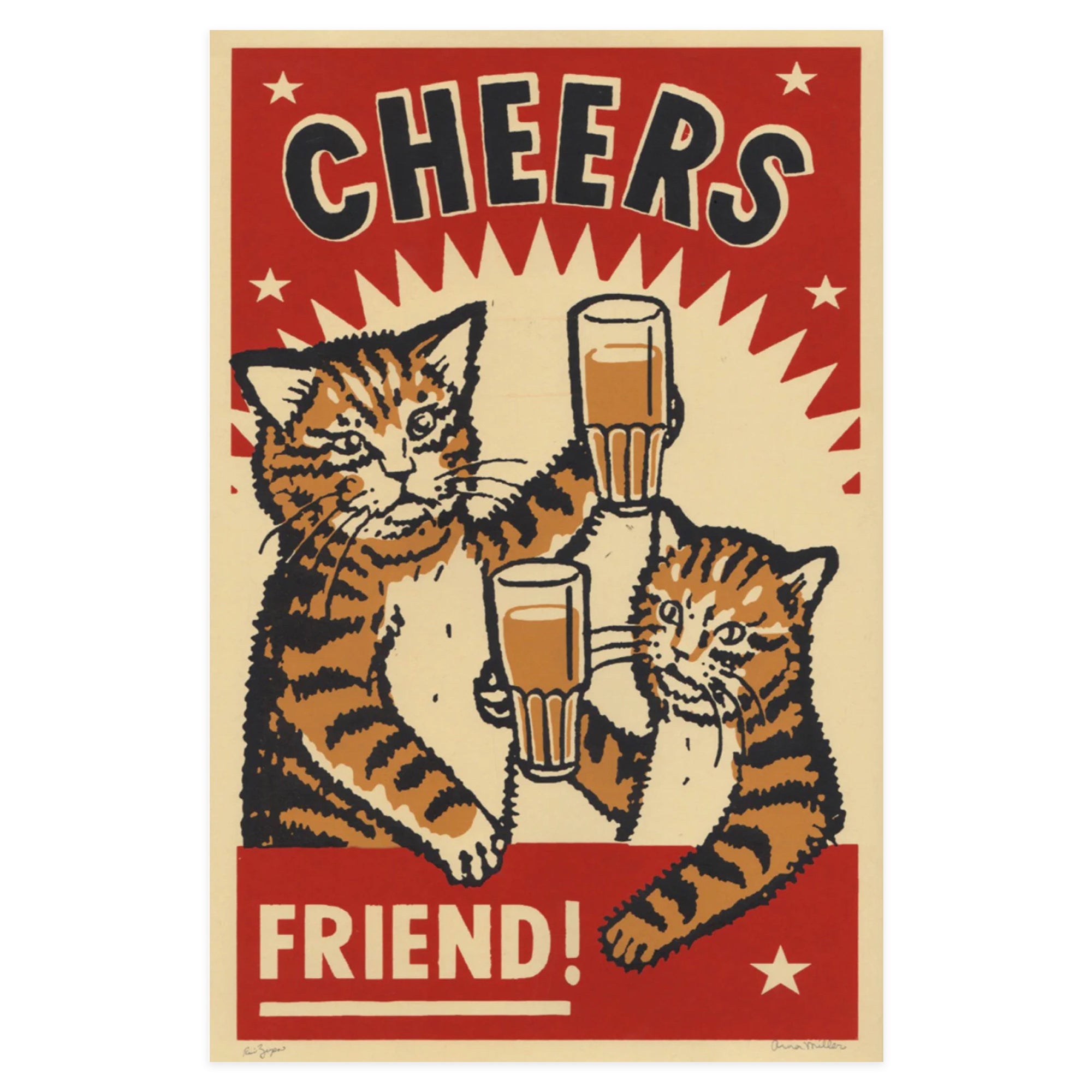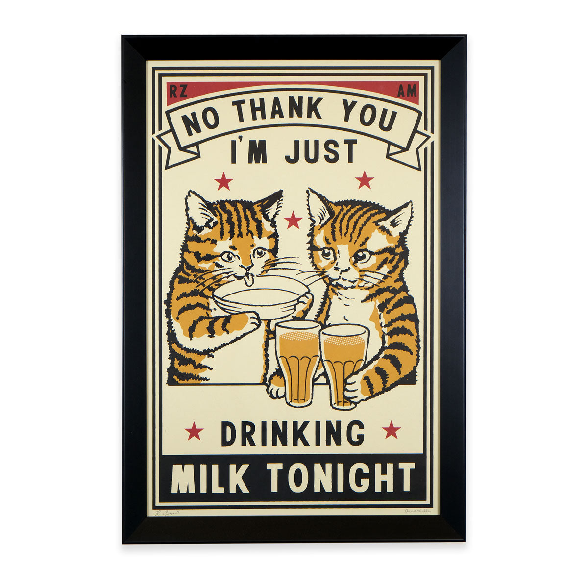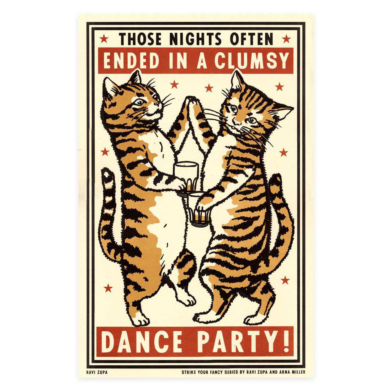 The Strike Your Fancy poster series is a collaboration between Arna Miller and Ravi Zupa. They feature cats drinking at the bar in the good, embarrassing, and confusing situations we have all found ourselves in. Both artists conceptualized, designed and drew the images for this twenty-poster series, the series is an open edition.