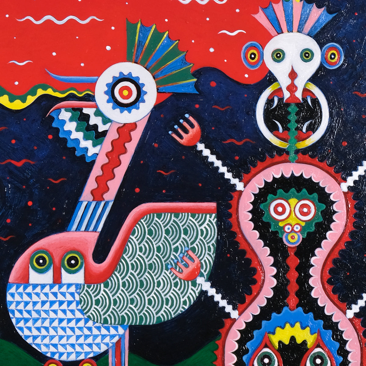 Yu Maeda is a Japanese painter, graphic designer, and animator living and working out of California. He has worked doing graphics for bands such as Animal Collective and has had multiple successful local and international solo exhibitions.