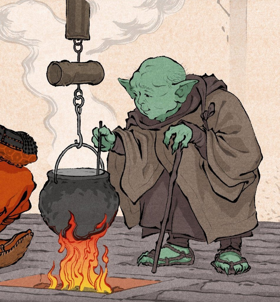I'm very pleased with the overall tone and mood of this design. At first glance it seems to depict a simple meal shared by a master and his ward. But hidden imagery lurks in the shadows, hinting that great danger is never far away...