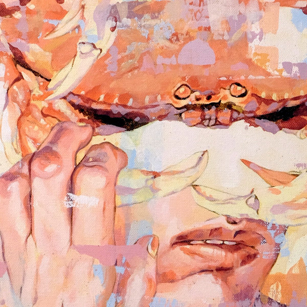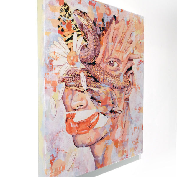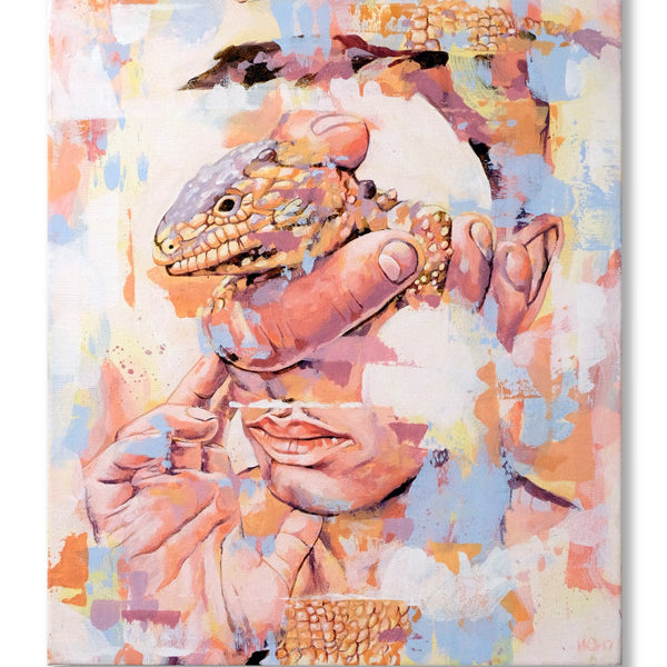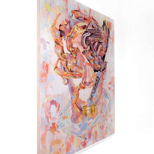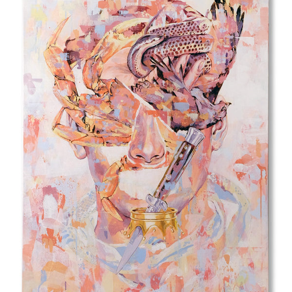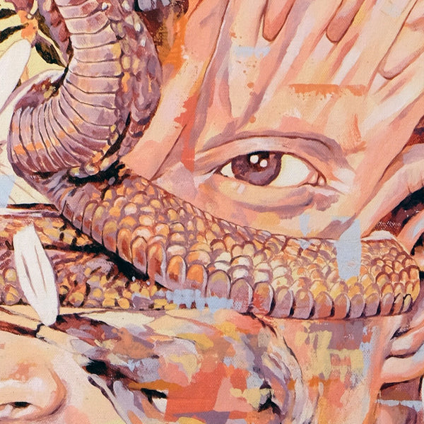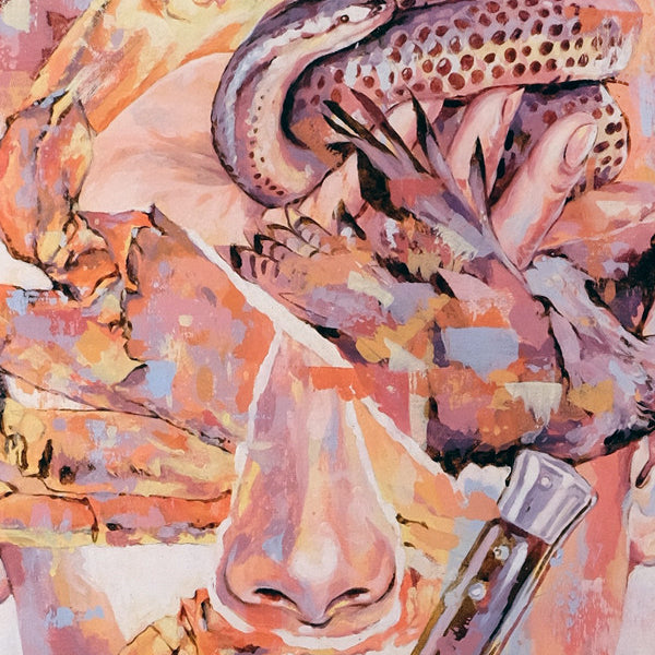 His upcoming show at Outré Gallery on May 12 is titled 'Ecdysis'. Ecdysis is the process of shedding skin or malting fur or feathers in animals. Sam parallels this process in the evolution of an animal with that of a human; shedding the old to make way for the new. Exploring a human’s need to shed beliefs as opposed to shedding old skin.
