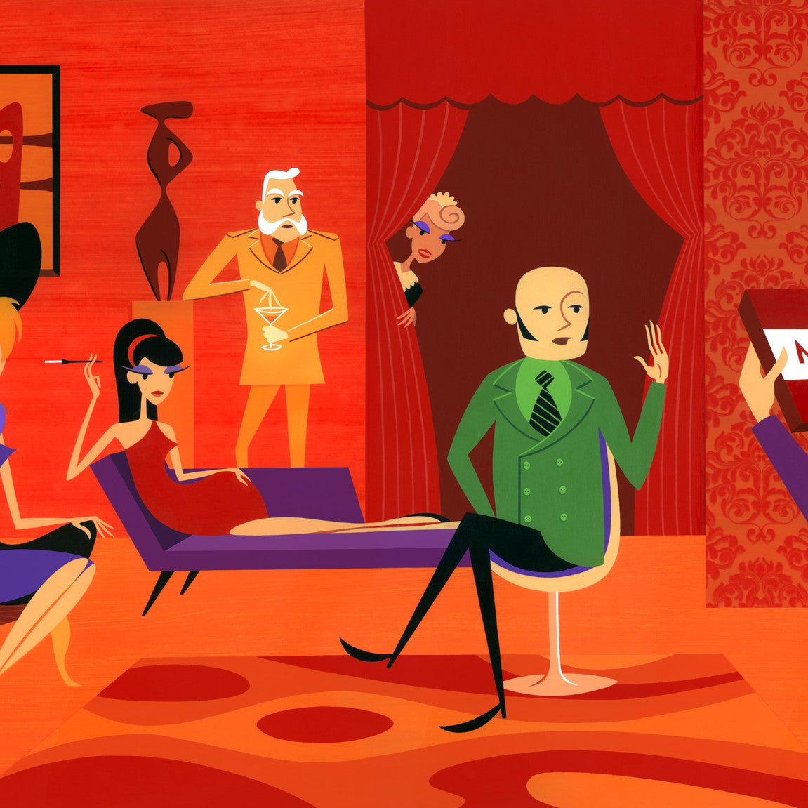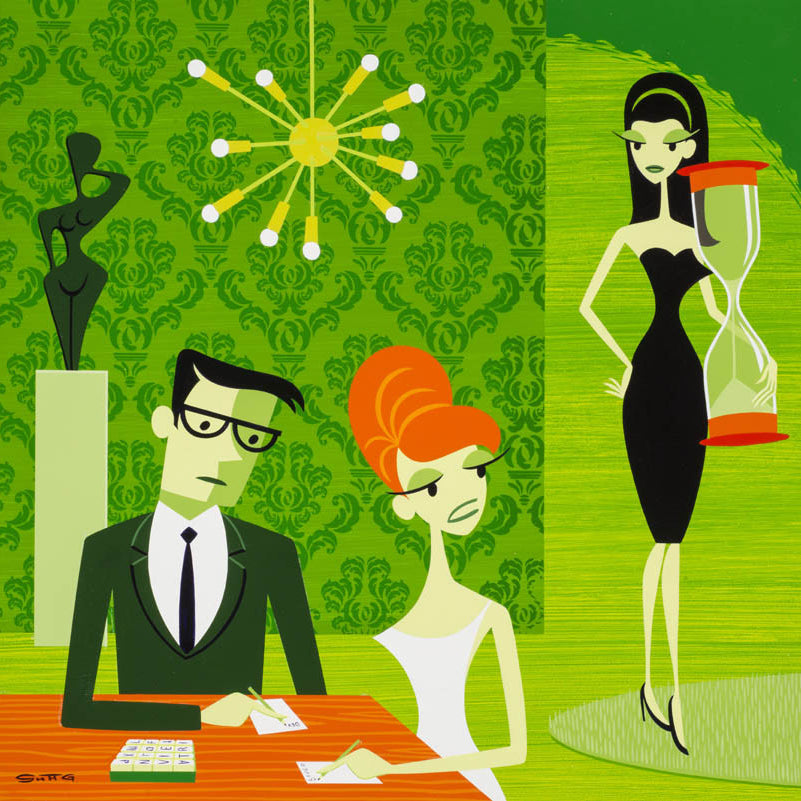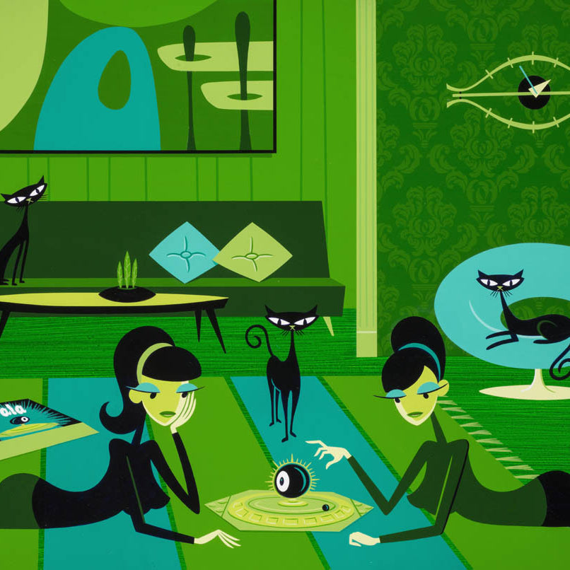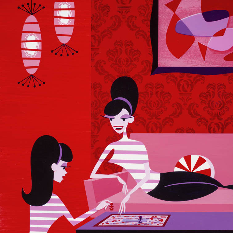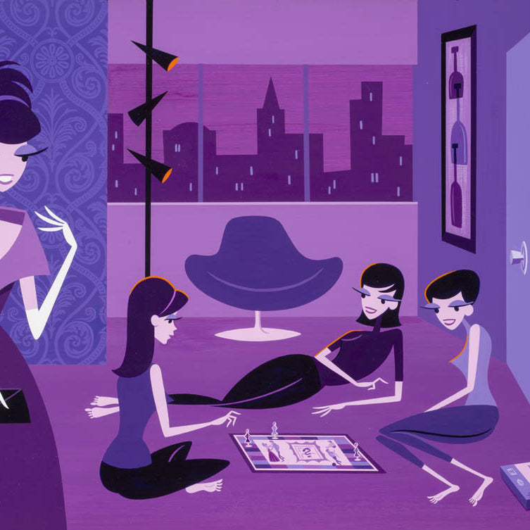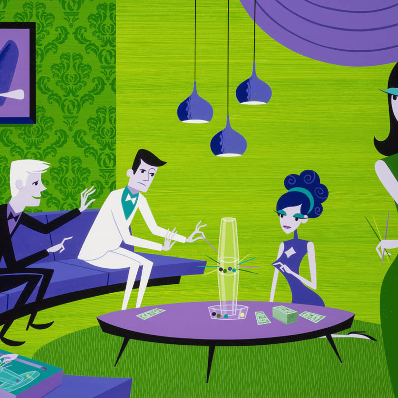 The master of sharp, swinging lounge aesthetic, Shag has adopted the 'Parlour Games' theme to create fantastical studies into some of the best known board games of our childhoods - including guest appearances by those notable characters which have constructed their own happy place within our conscious.