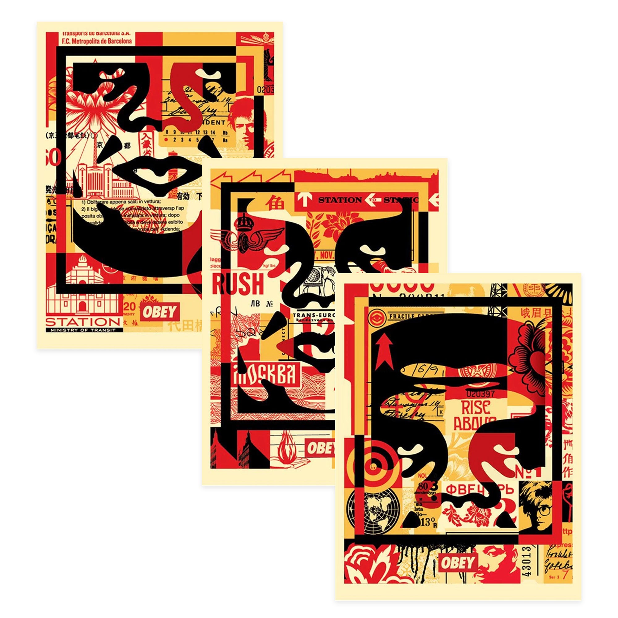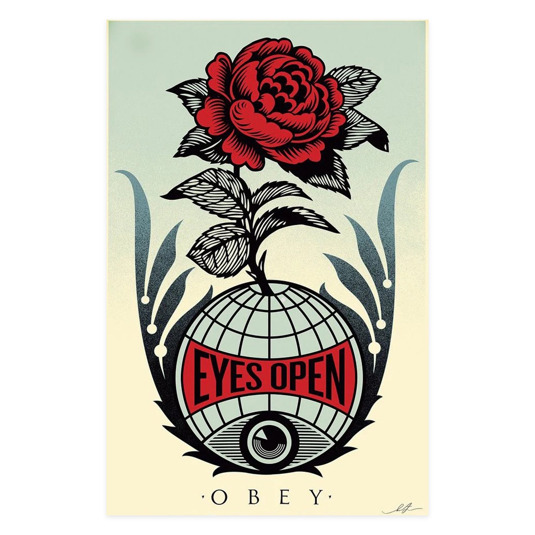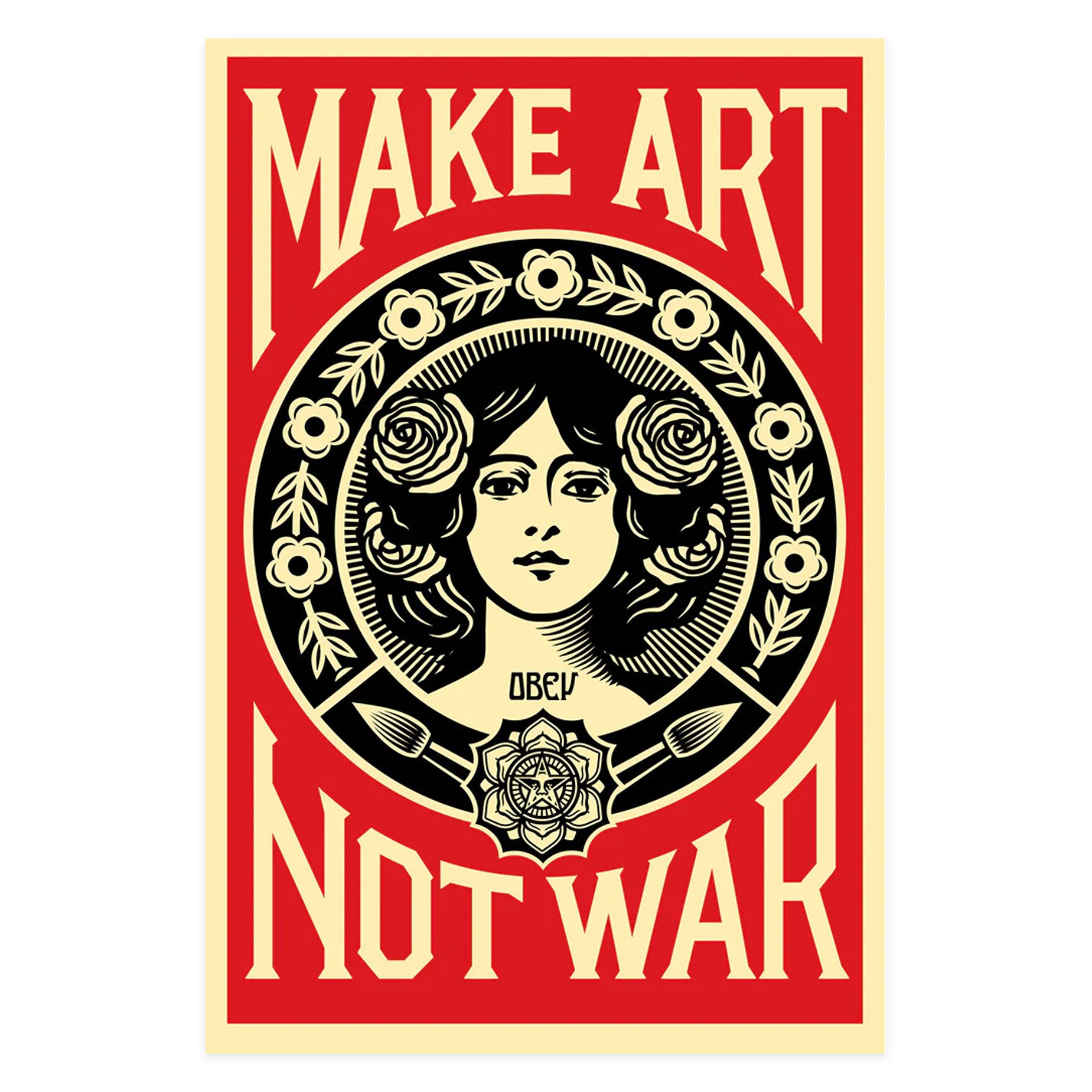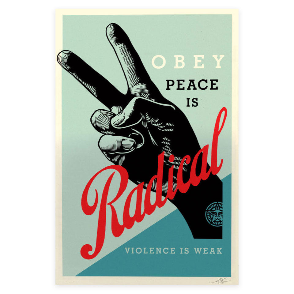 Shepard Fairey's OBEY slogan is now stated across many of his bold multi-disciplined works - often involving remarks on our culture, whilst featuring appropriated politically or socially charged imagery.