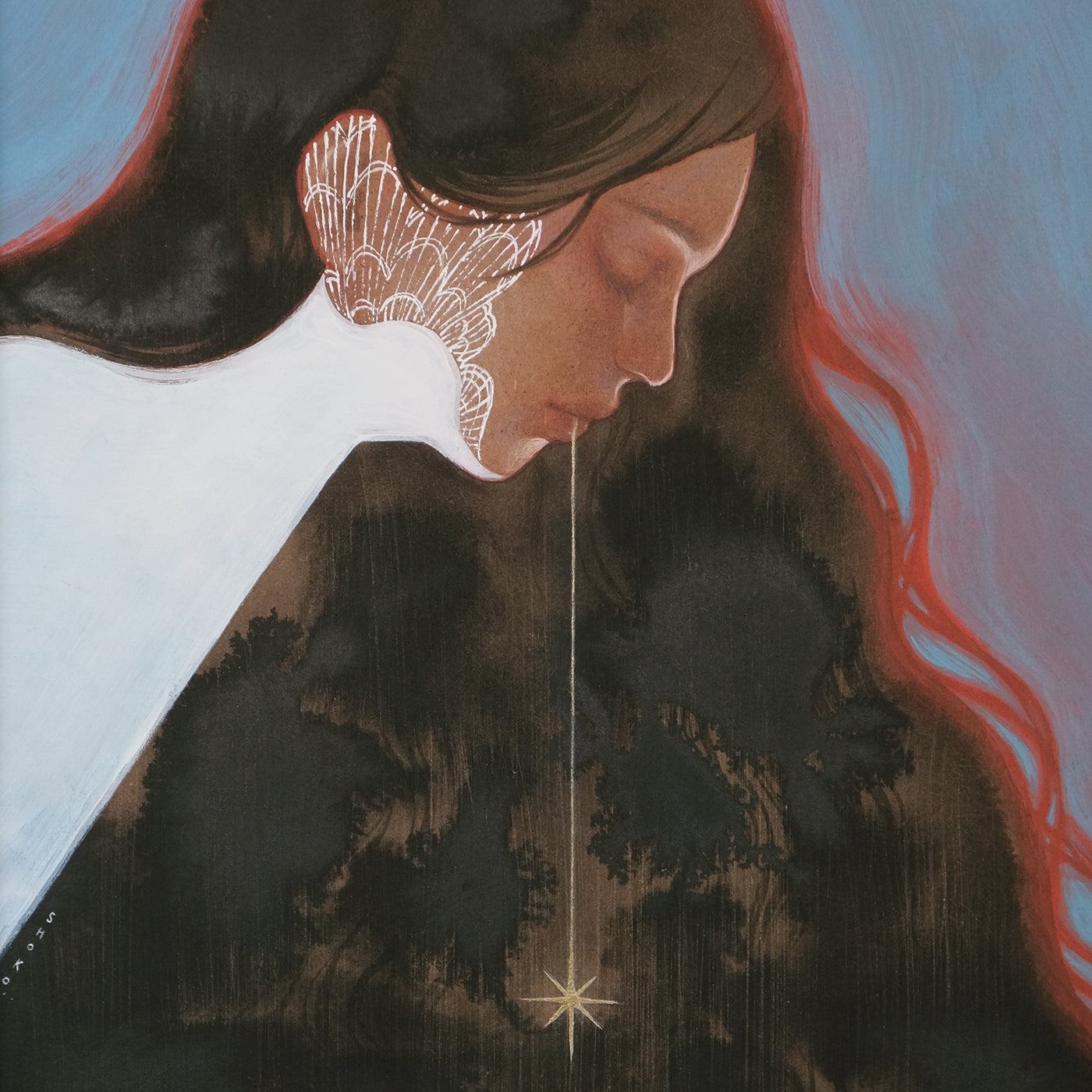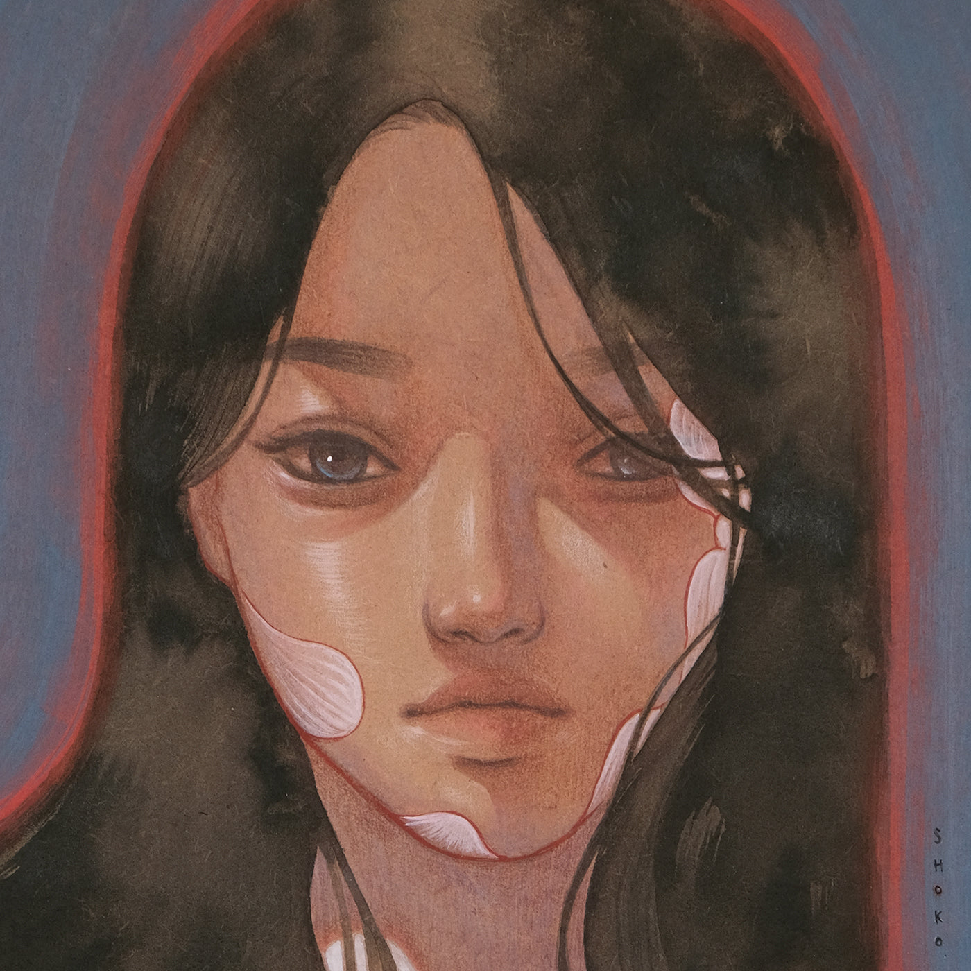Shoko Ishida is a Japanese artist and illustrator currently residing in Michigan, US. Inspired by the idea of transience, nature, fashion, the nostalgic culture of Japan, she strives to create works that sparks a story. The coffee and tea enthusiast creates her mixed media works mainly using acrylics, watercolor, color pencil, ink, gouache, and pastel in her studio with her golden retriever sleeping by the desk.