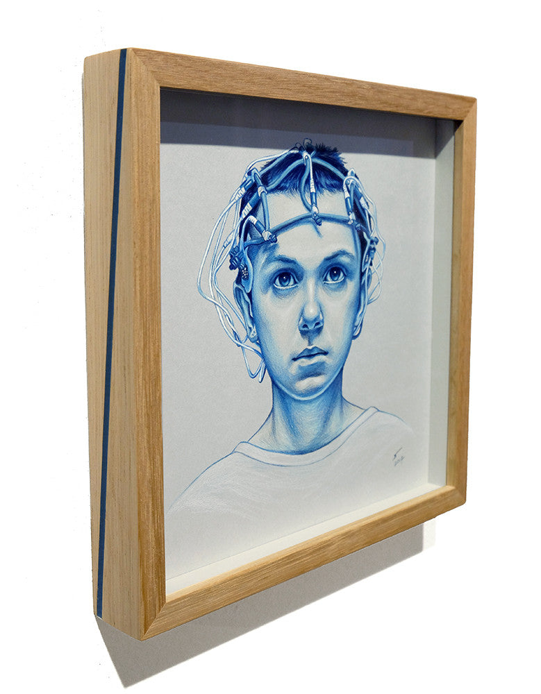 framed in a hand-made Tasmanian Oak frame with tapered and inlaid colour resin lines & non reflective glass.