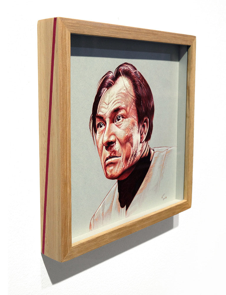 framed in a hand-made Tasmanian Oak frame with tapered and inlaid colour resin lines & non reflective glass.