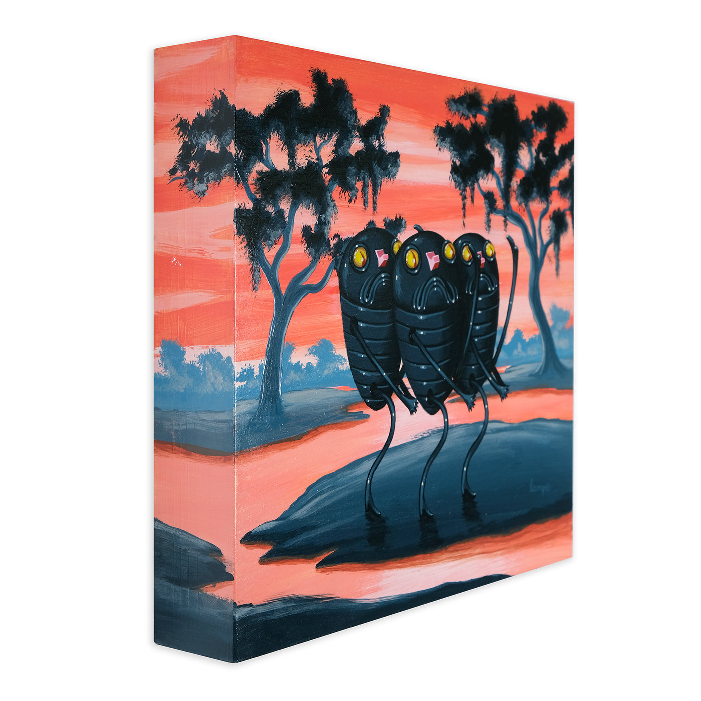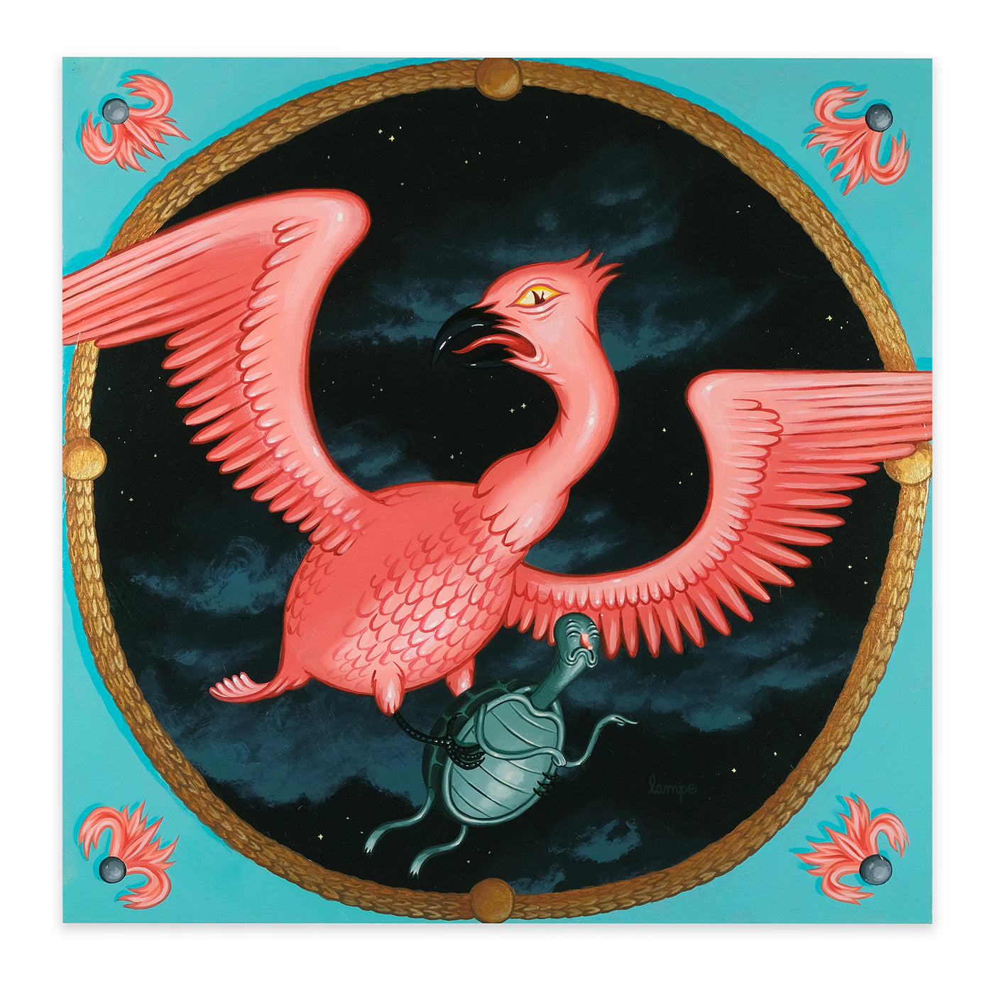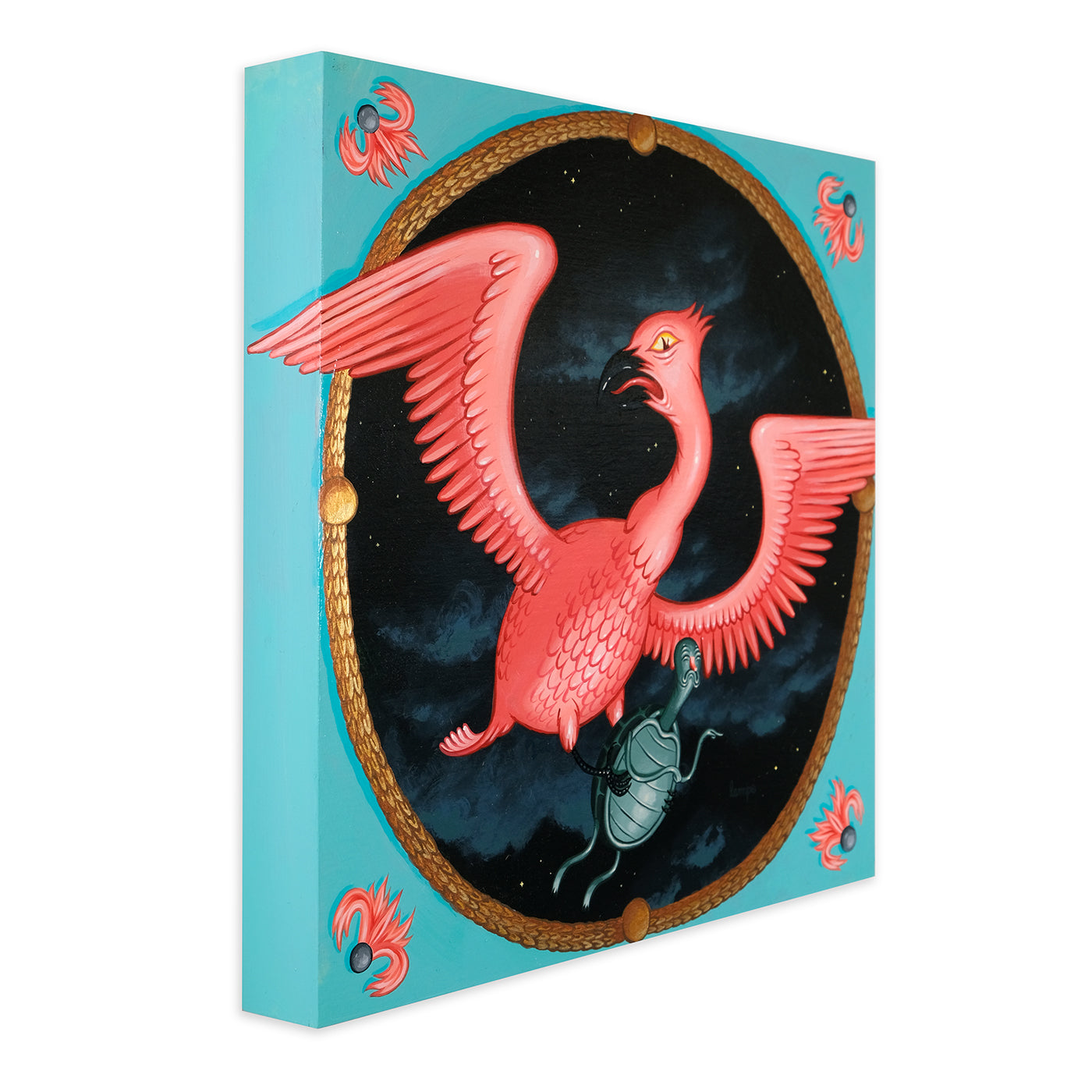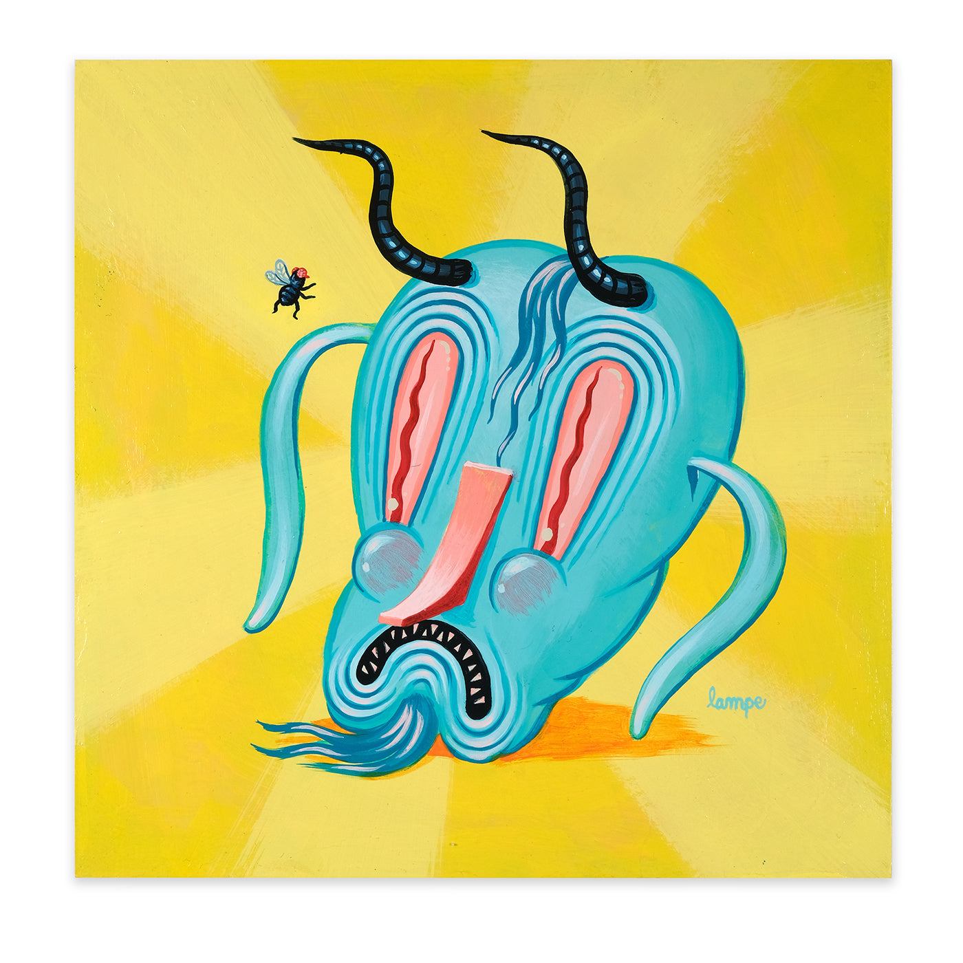 In Outright Foolerishment, Travis is sharing a new body of work with a bit of an Aesop's Fable feel to it this time. Travis stated, "Each painting comes with a lesson, but not the kind of lesson you'd want to 'take on board', so to speak. More the kind of lessons you learn from a pre-teen babysitter who starts smoking the second your parents leave the house."