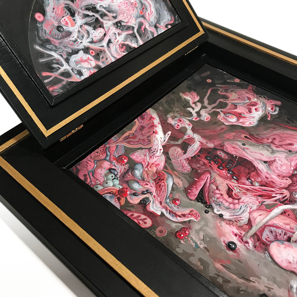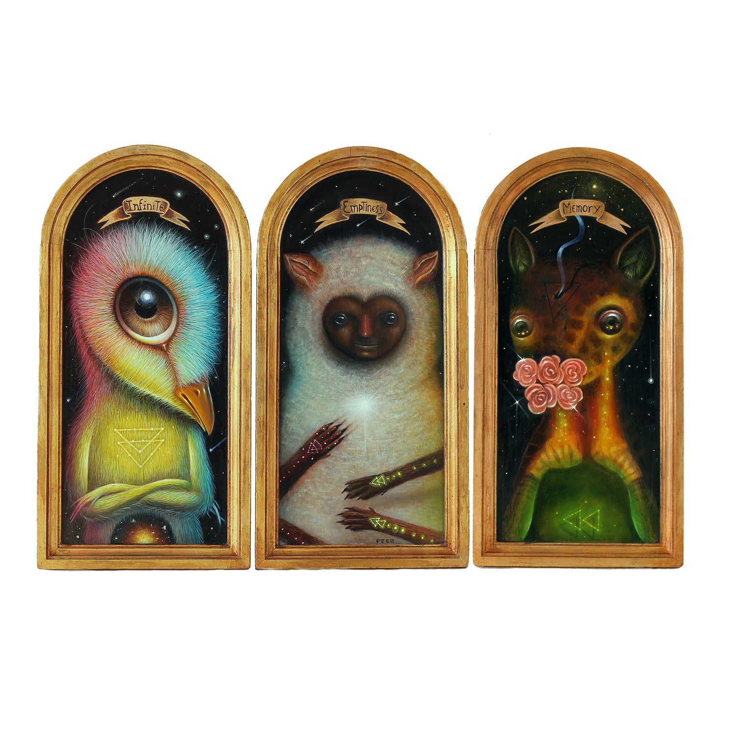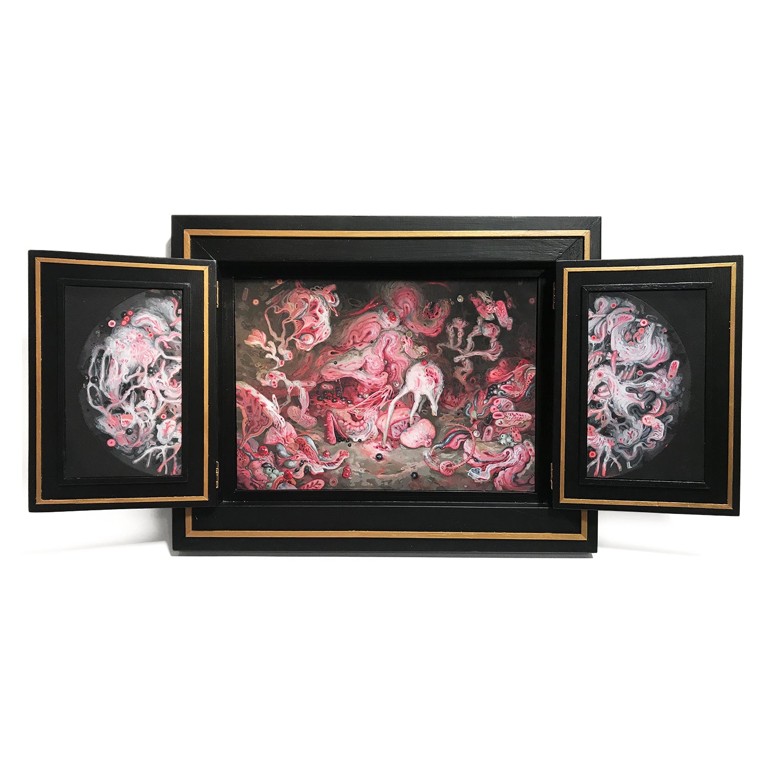 The artists in this show have reimagined the triptych in their own voice. Some interpreted a small section of the piece, others a whole panel, or even the overarching theme of the artwork – the scope was wide and varied. The artists have delved deeply into the artwork, the figures, the creatures and all the surreal details.