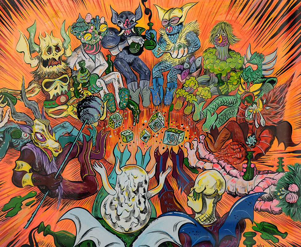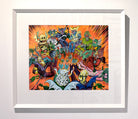 Original Painting / gouache and cel - vinyl paint on paper / framed in white retro frame