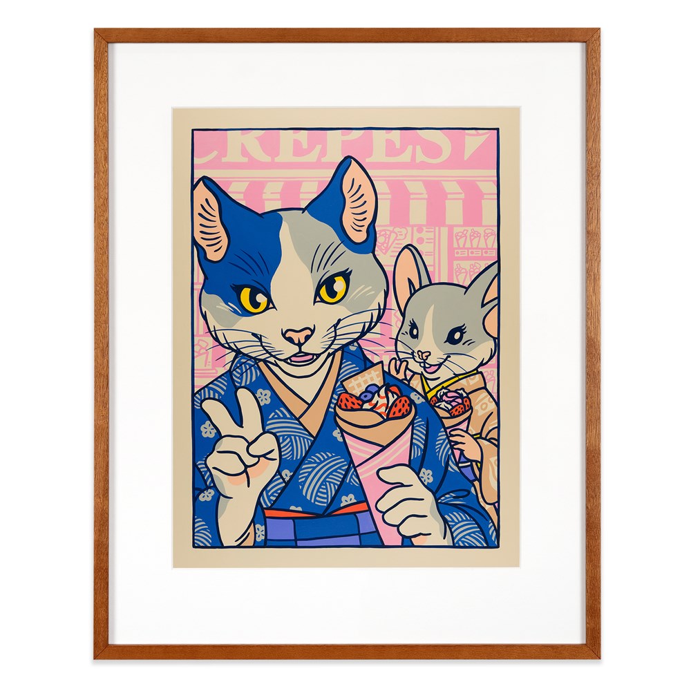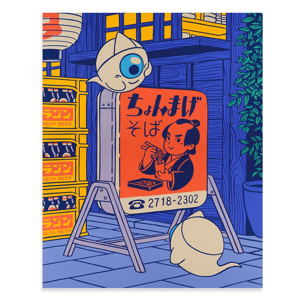 As a body of work, ITADAKIMASU represents the style I've been developing over the past few years. It’s totally inspired by Japanese pop culture with a strong Shōwa Era vibe - bright colors, clean line work, kind of a mix between Japanese woodblock prints and anime.