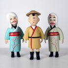 Medium: Free standing hand sculpted figures. Resin, acrylic paint, varnish