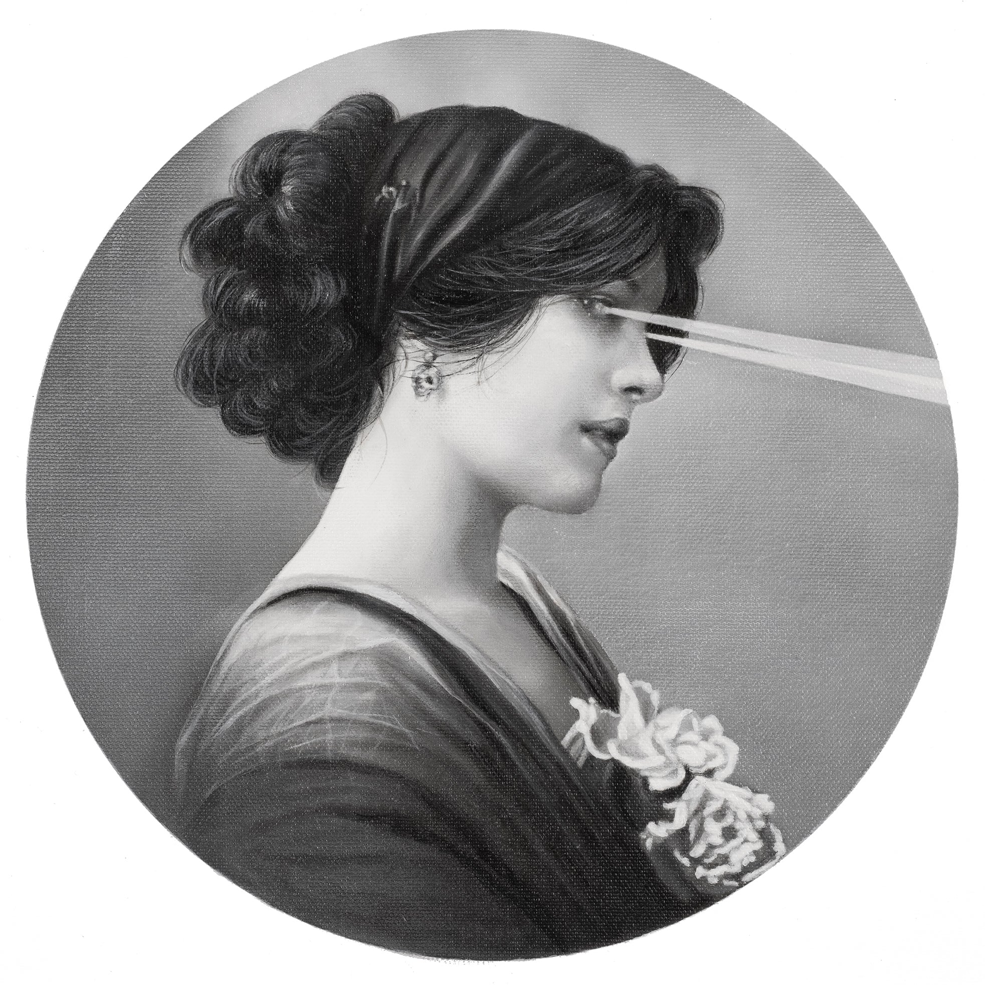 The subjects of Zoé Byland’s paintings exist within a carefully constructed monochromatic universe; exuding a curious timelessness and imbued with a palpable atmosphere. Through her protagonists, Byland invites us on a journey into intriguing territory, where past and present collide, providing us with opportunities to explore the relationships that exist between all facets of our cultural experience from high to low, the ways in which we form personal memories and how these serve to alter our expectations and perceptions. The nature of identity is also under scrutiny, as Byland’s characters often appear in disguise, or are partially obscured, inviting us to project ourselves forth, and once again granting us the occasion for valuable introspection and the convergence of philosophical contemplations.