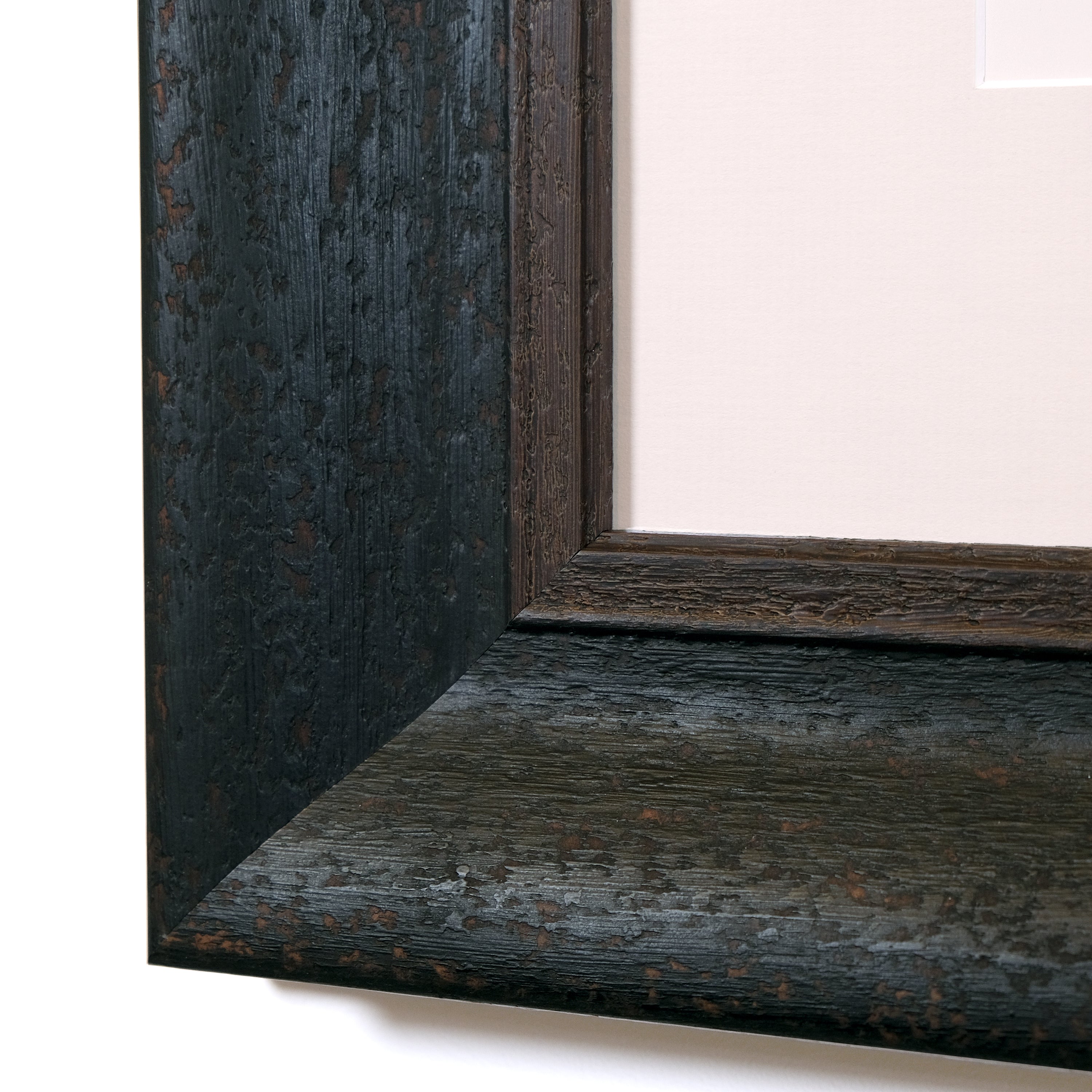 The Antique frame features a rich dark brown finish with a rustic, weathered texture. Its natural charm and tactile surface make it the perfect pairing for vintage or faux-vintage artworks and photographs—adding warmth, depth, and a nostalgic feel to any piece.