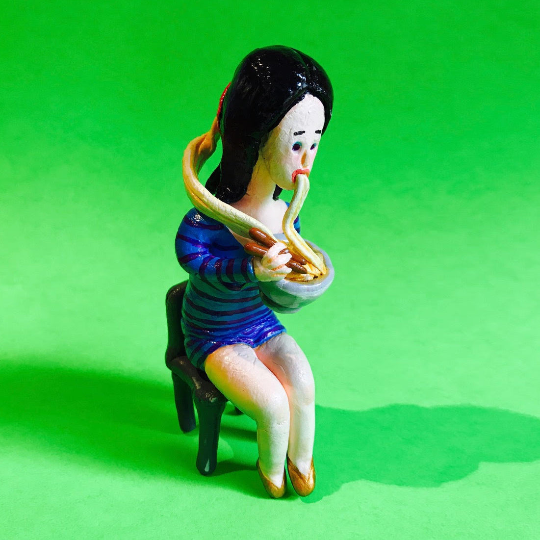 Medium: hand sculpted & painted clay figurine. Comes in custom display box.